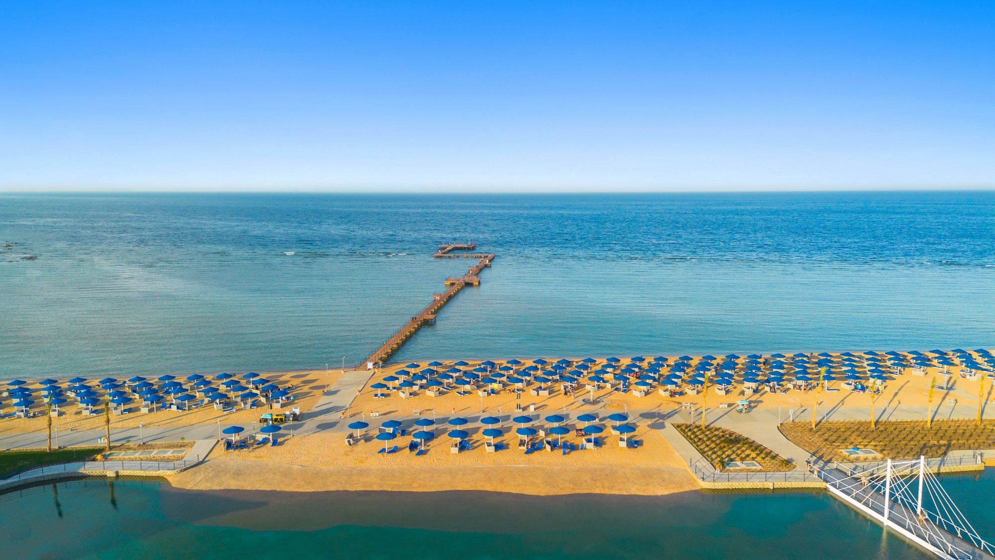 Пирс, понтон: есть, 365 м. Территория пляжа: песчаный пляж Длинна: 900 м |
