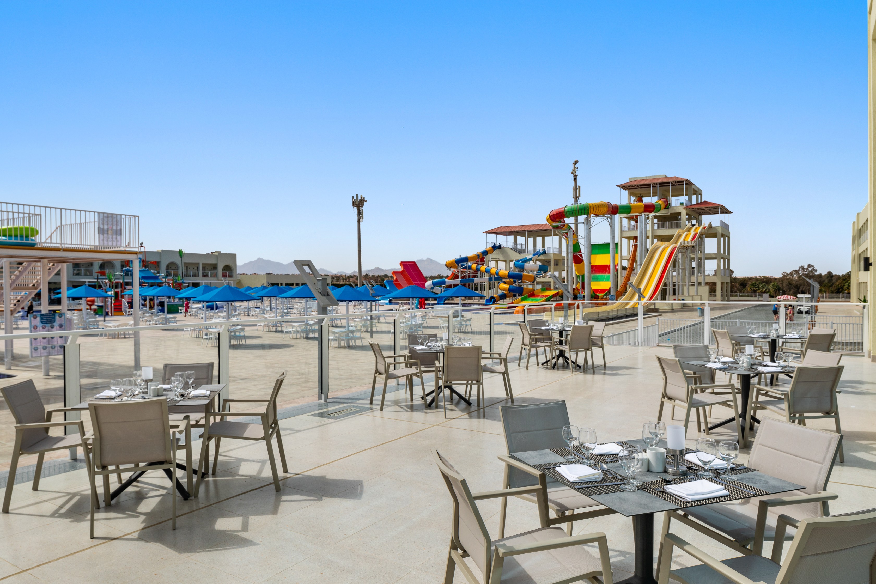 | Комментарии к бассейну и горкам | 20 бассейнов (1 из них с подогревом зимой) с 10 встроенными детскими бассейнами и 1 встроенной джакузи<br /> 1 детский бассейн<br /> 1 лагуна с морской водой<br /> 1 аквапарк для взрослых с 6 горками<br /> 1 детская аквабашня с 4 горками (возраст 4-8 лет, с подогревом)<br /> 1 аквапарк для подростков с 6 горками (возраст 6-15 лет) |