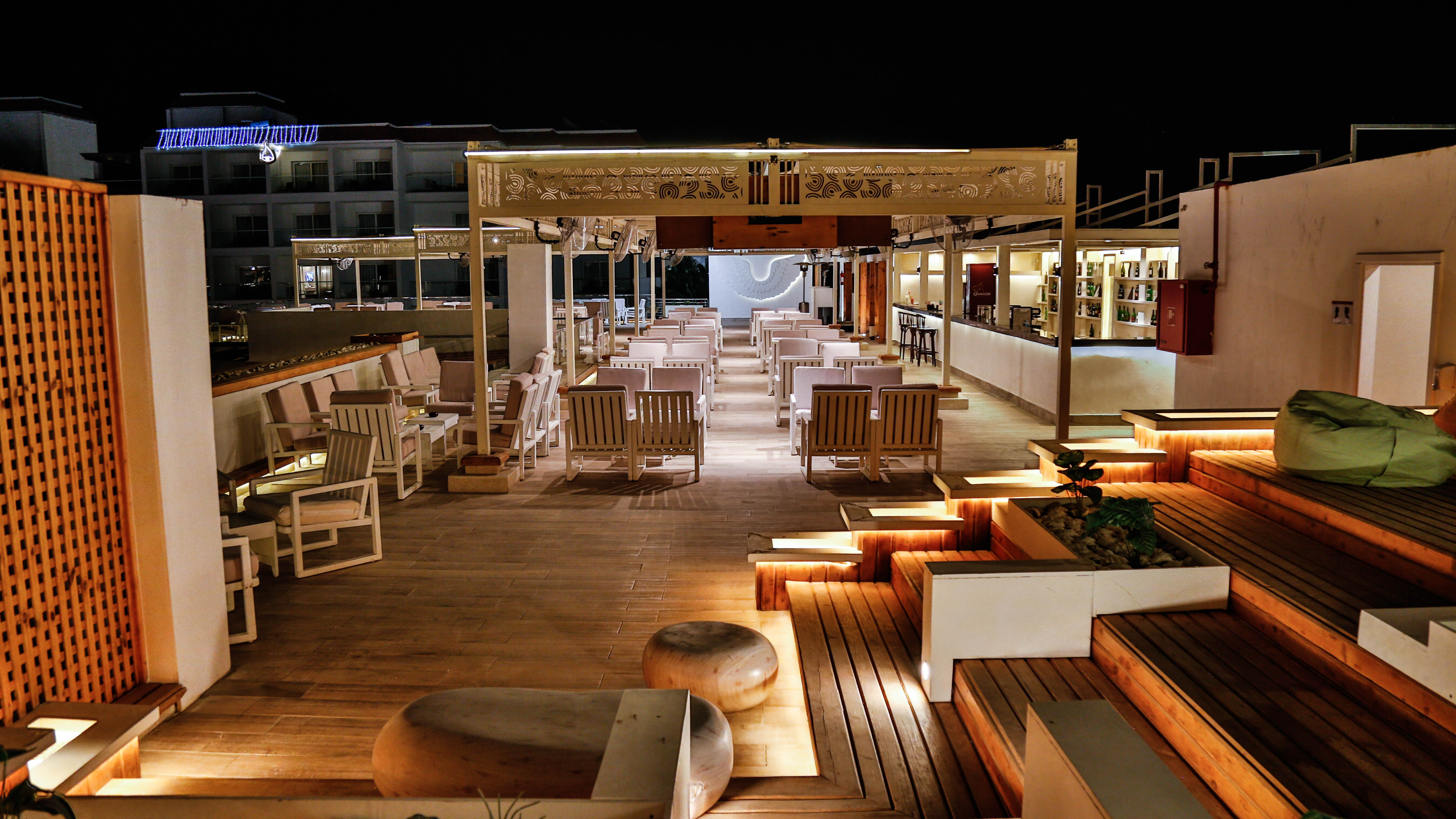 | Бар | Turquoise Lobby Bar круглосуточно (с 00:00 до 10:00 только безалкогольные напитки) Tropicana Pool Bar 10:00-23:00 Sunny Beach Bar 10:00-17:00, закуски 12:30-17:00 SeaShark Pool Bar 10:00-17:00 German Beer Garden 19:00-00:00 Sky Lounge 19:00-00:00 3 Monkeys 19:00-01:00 London Pub 19:00-01:00 |