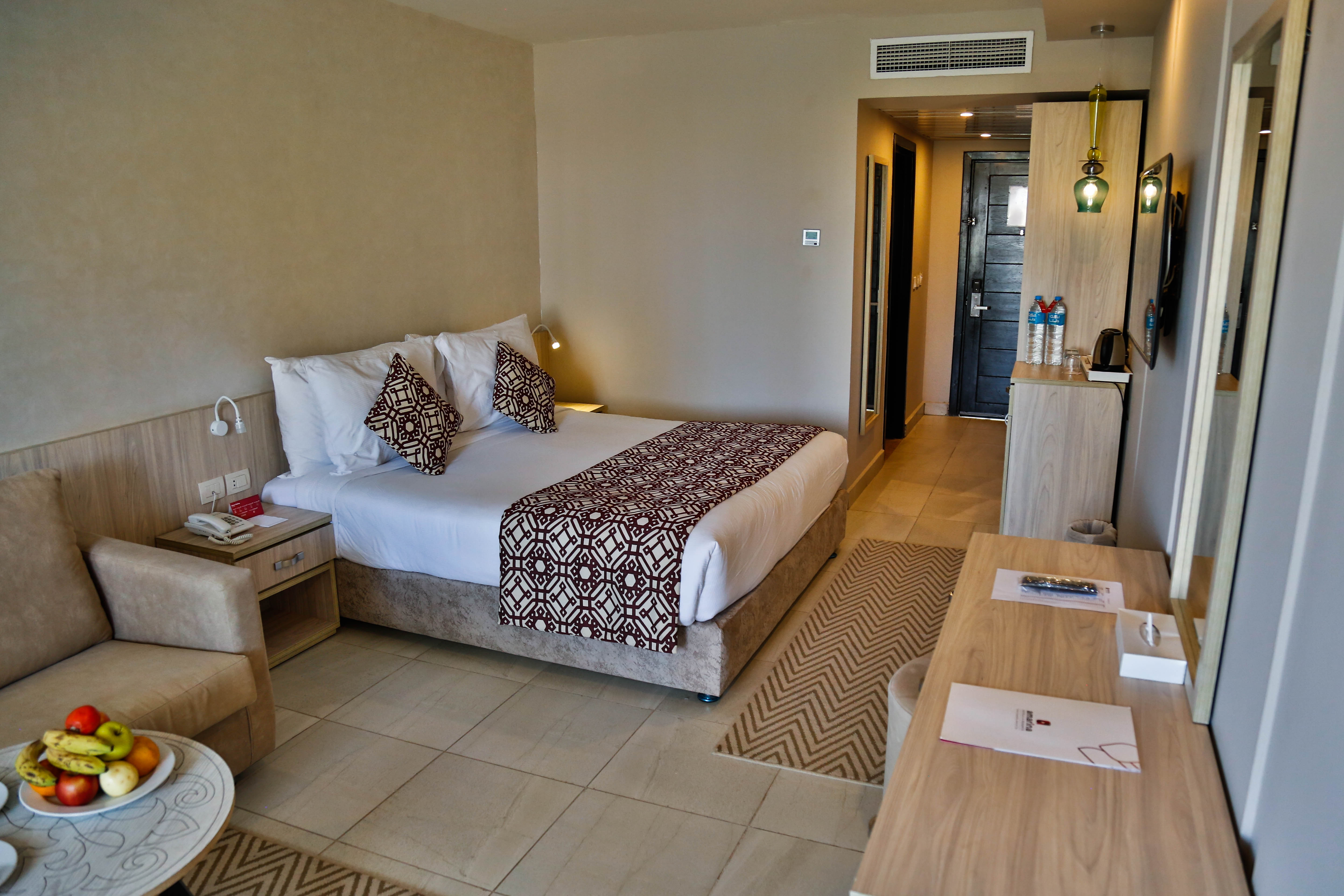 Вид из номера: на бассейн Покрытие пола: Плитка Наполнение мини-бара: 1 бутылка воды в день бесплатно Уборка в номере: ежедневно Смена белья: 2 раза в неделю электроный сейф,халат и тапочки по запросу. |