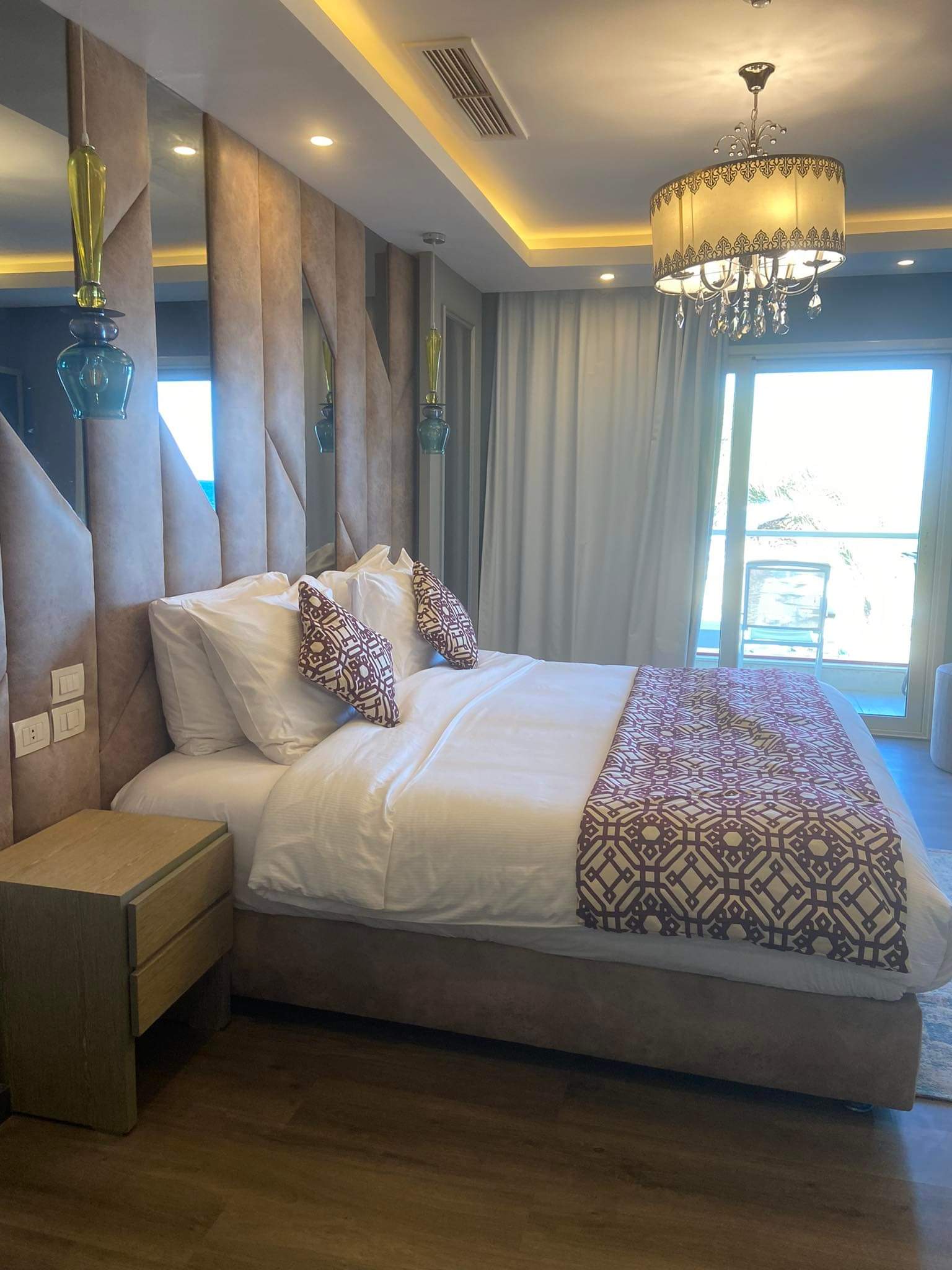 Вид из номера: на море Состоит из одной спальни, гостиной, столовой, мини-кухни с холодильником, микроволновой печью, стиральной машины. 3 балкона, выходящих на пляж.<br /> В номере могут разместиться максимум 5 взрослых или 4 взрослых плюс 1 ребенок. <br /> 1 Queen Bed (ширина 200 см) + 2 односпальные кровати (ширина 120 см) + 1 софа.<br /> Каждый номер оснащен спутниковым телевидением, ванной комнатой с душем и ванной, кондиционером с индивидуальным управлением, телефоном с прямым международным набором, сейфом, феном, зеркалом.<br /> Дополнительно:<br /> - Бесплатный завтрак в номер один раз<br /> - 15% скидка на оздоровительный СПА-центр<br /> - Два посещения каждого ресторана Ala Carte в неделю<br /> - Корзина с фруктами в номере по прибытии<br /> - Ранний заезд в 10:00 и поздний выезд в 14:00 при наличии возможности<br /> - Скидка 10% при позднем выезде после 14:00<br /> - Скидка 15 % на все мероприятия Дайвинг-центра<br /> - Скидка 15 % на все мероприятия Аква-центра. |