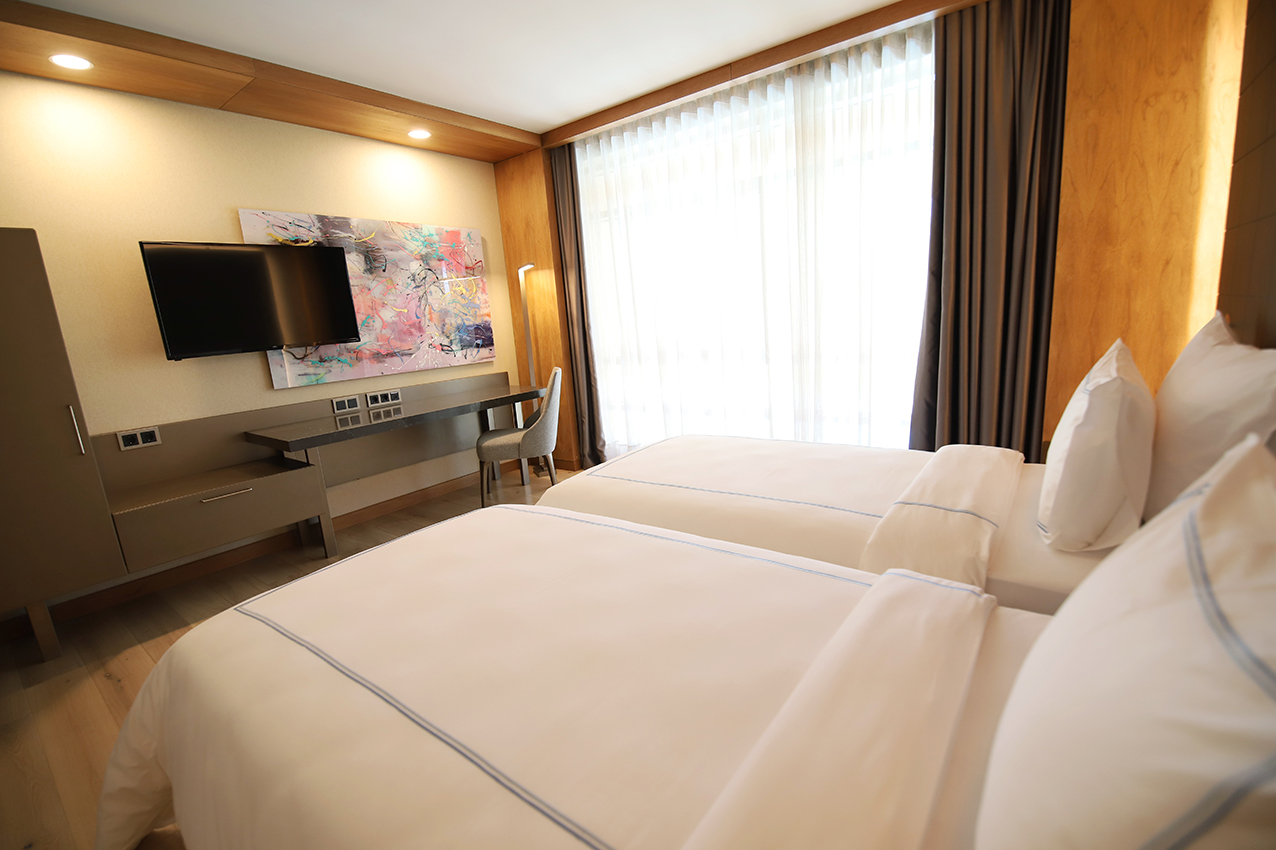 Расположение номера: в основном здании (на всех этажах) Вид из номера: на сад/на бассейн Покрытие пола: Паркет Наполнение мини-бара: Безалкогольные и алкогольные напитки. Пополняется ежедневно. Уборка в номере: ежедневно Смена белья: раз в два дня Дополнительные услуги: кофемашина Nespresso Балкон или терраса. <br /> Дополнительное спальное место:<br /> - Софа (90x190)<br /> - Раскладная доп. кровать (по запросу, 100x190) |