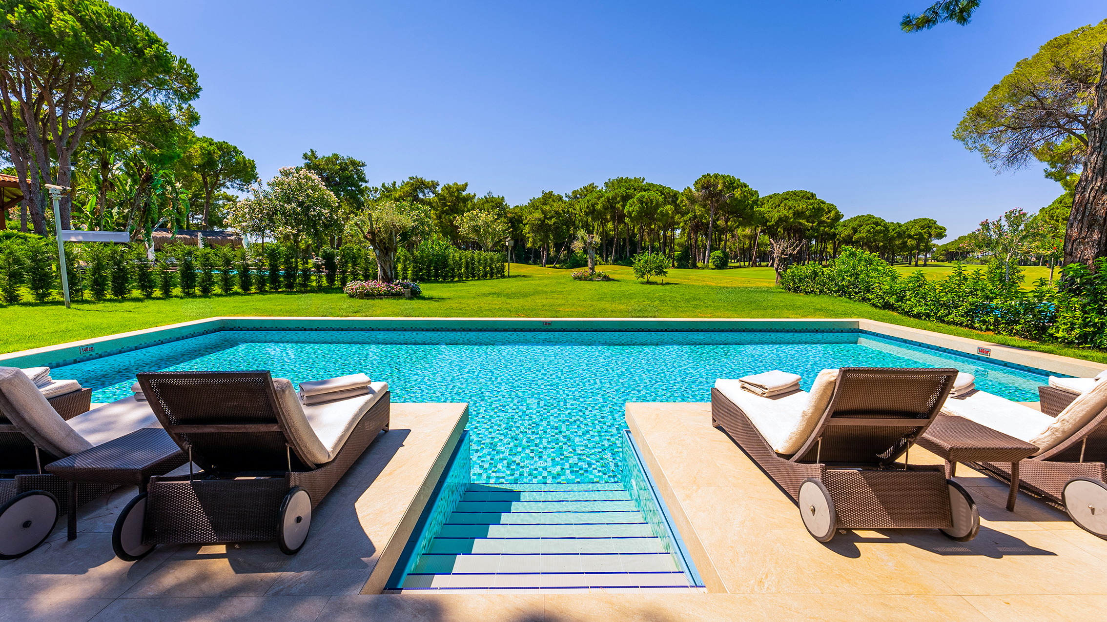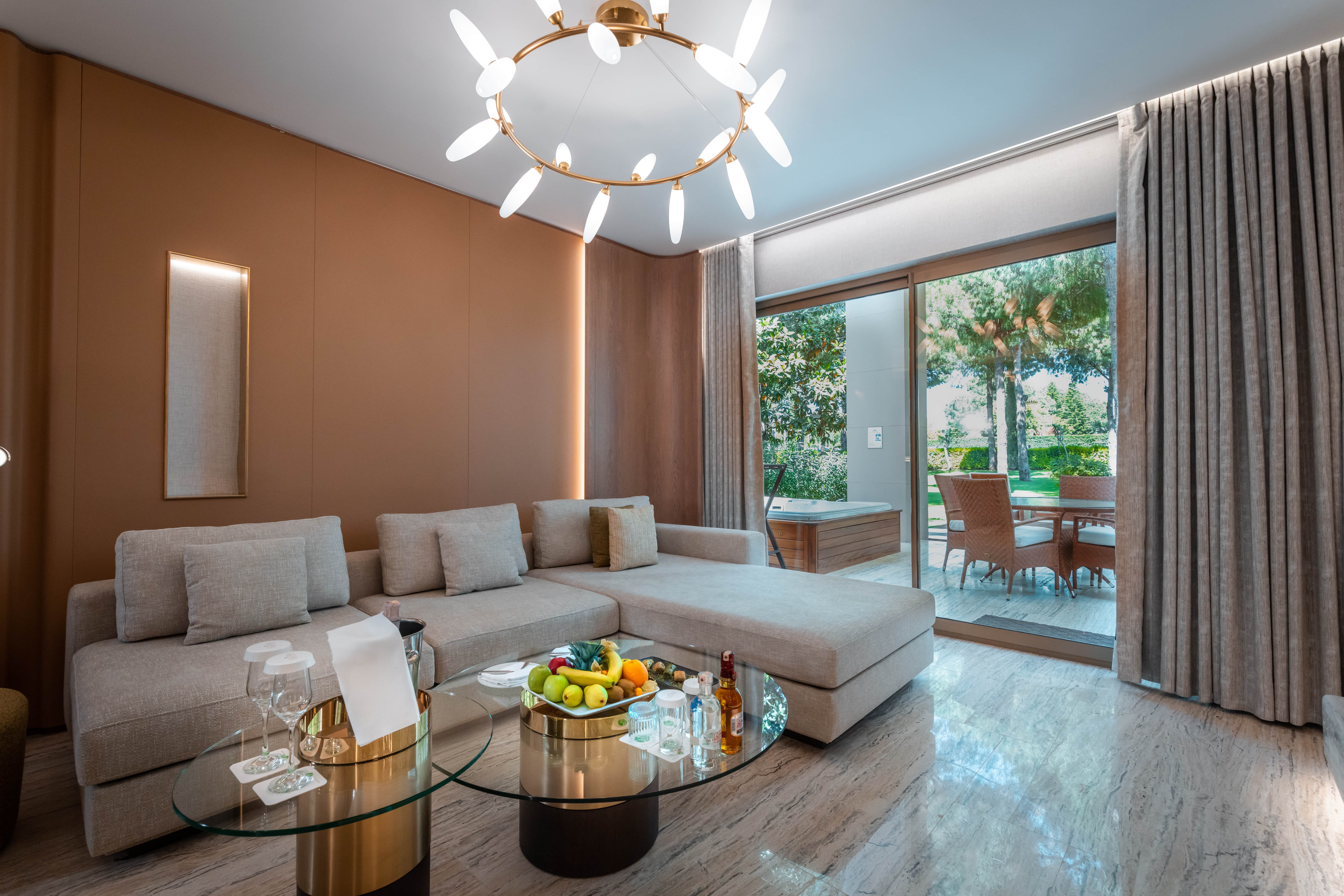 Расположение номера: вилла Вид из номера: на сад/на гольф поля/на бассейн Покрытие пола: Ламинат Наполнение мини-бара: Безалкогольные и алкогольные напитки. Пополняется ежедневно. Уборка в номере: ежедневно Смена белья: через день Дополнительные услуги: кофемашина Nespresso Двухэтажная вилла. В спальнях 1 двуспальная или 2 односпальные кровати. 3 ванные комнаты. Джакузи в одной из спален. Небольшая кухня. Столовая зона. Терраса. <br /> Частный открытый бассейн (пресная вода / морская вода по запросу, возможность подогрева по запросу, глубина 140 см, площадь 94 кв. м). Шезлонги у бассейна.<br /> Личный батлер.<br /> Личная горничная.<br /> Багги.<br /> Павильон на пляже (доступно в летний сезон).<br /> Концепция «Все включено» в трех отелях Gloria (за исключением ресторанов A la Сarte).<br /> Рестораны A la Carte в трех отелях Gloria (за исключением ресторана Teppanyaki) предоставляется 1 раз в неделю для каждого ресторана, в зависимости от наличия свободных мест.<br /> Завтрак и обед в ресторане Route 66 (08:00 - 11:00 & 12:30 – 16:00, летний сезон). |