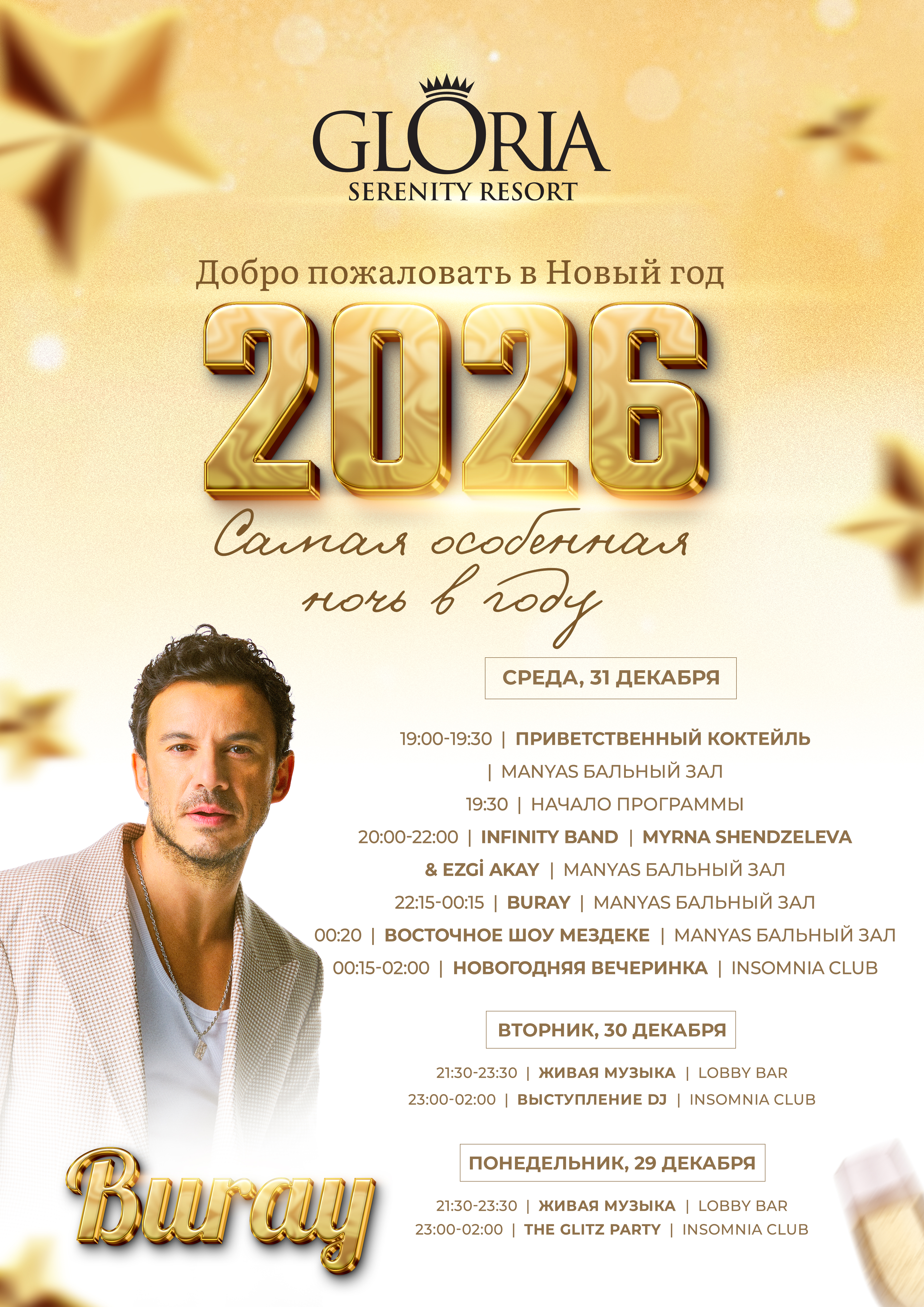 | Комментарии | Концепция "Gloria AI" действует круглосуточно, включает безалкогольные и алкогольные напитки местного производства, некоторые импортные напитки, свежевыжатый сок.<br /> Безглютеновое, безлактозное, веганское и диетическое меню.<br /> Платно: напитки премиум класса, напитки VSOP, напитки более чем 12 летней выдержки. <br /> • Услуги питания и напитков, предоставляемые в других отелях Gloria Hotels & Resorts, оплачиваются со скидкой 50% (кроме ресторанов A la Carte). Посещение ресторанов A la Carte оплачивается в соответствии с установленной стоимостью без применения скидки.<br /> <br /> Зимняя Концепция отеля опубликована в разделе "Дополнительная информация". |