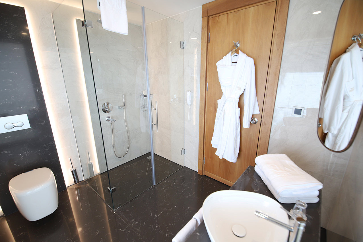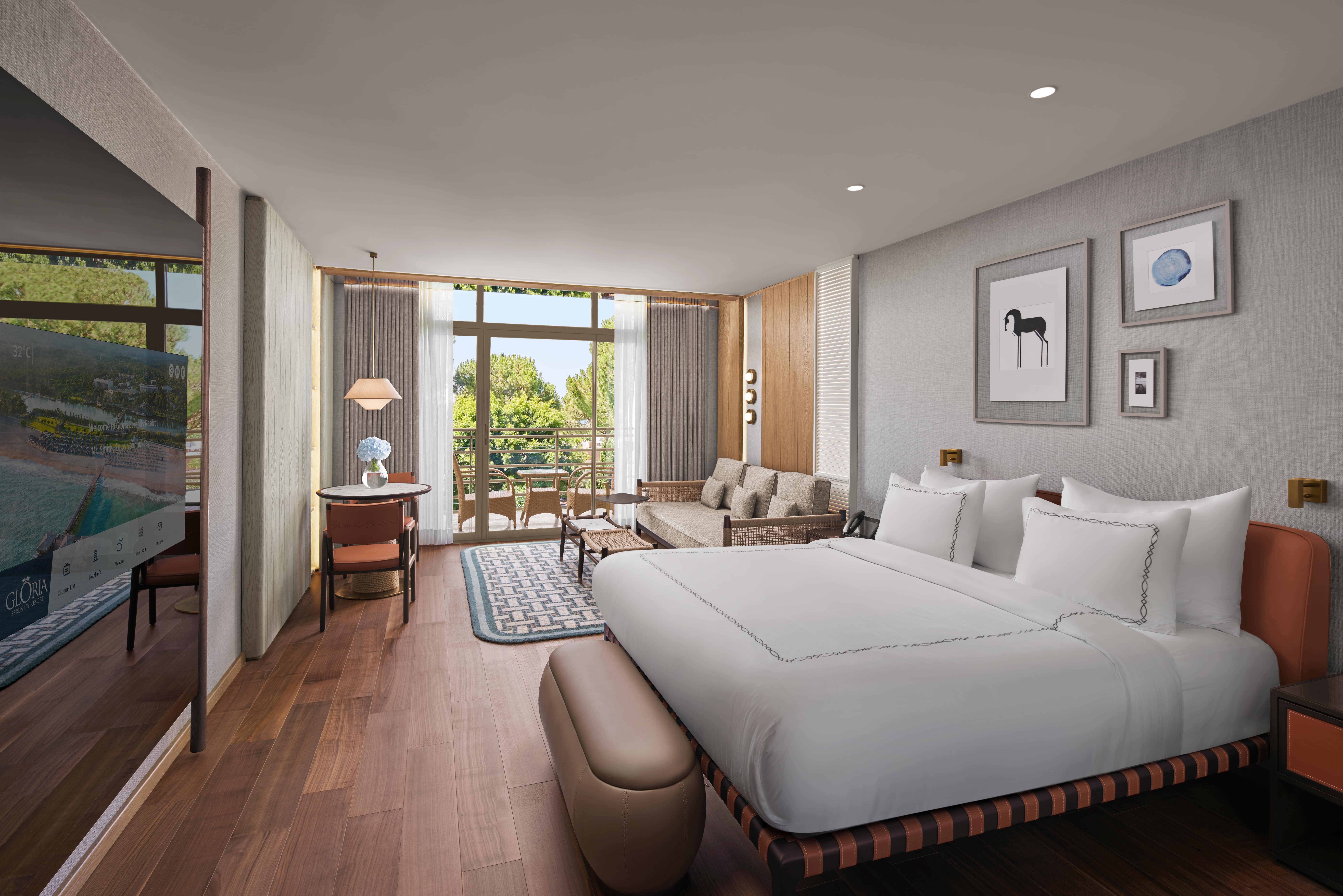 Расположение номера: в основном здании Вид из номера: на море/на сад Джакузи: на балконе Покрытие пола: Ламинат Наполнение мини-бара: Безалкогольные и алкогольные напитки. Пополняется ежедневно. Оборудование кухни: кухонная зона с кофемашиной, электрическим чайником и раковиной Уборка в номере: ежедневно Смена белья: раз в два дня Дополнительные услуги: кофемашина Nespresso 2 балкона (1 с джакузи). 3 ванные комнаты. 2 гардеробные.<br /> Павильон на пляже - бесплатно (доступно в летний сезон со 2 по 5 линию в<br /> зависимости от наличия).<br /> Быстрое обслуживание в аэропорту Fast Track (на обратном вылете).<br /> Glorian Guest Service Agent.<br /> VIP-концепция – возможность бесплатно пользоваться главными ресторанами, снэк-ресторанами, а ля карт ресторанами и барами трех отелей Gloria Hotels & Resorts (за исключением ресторана Teppanyaki). |