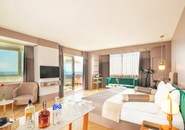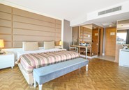 Вид из номера: частичный вид на море Покрытие пола: Ламинат Наполнение мини-бара: Прохладительные напитки, пиво, вода. Обновляется ежедневно. Уборка в номере: ежедневно Смена белья: три раза в неделю Двухкомнатный номер с раздвижной межкомнатной дверью. 1 комната без окна. 1 ванная комната. Центральный кондиционер работает в зависимости от погодных условий. |