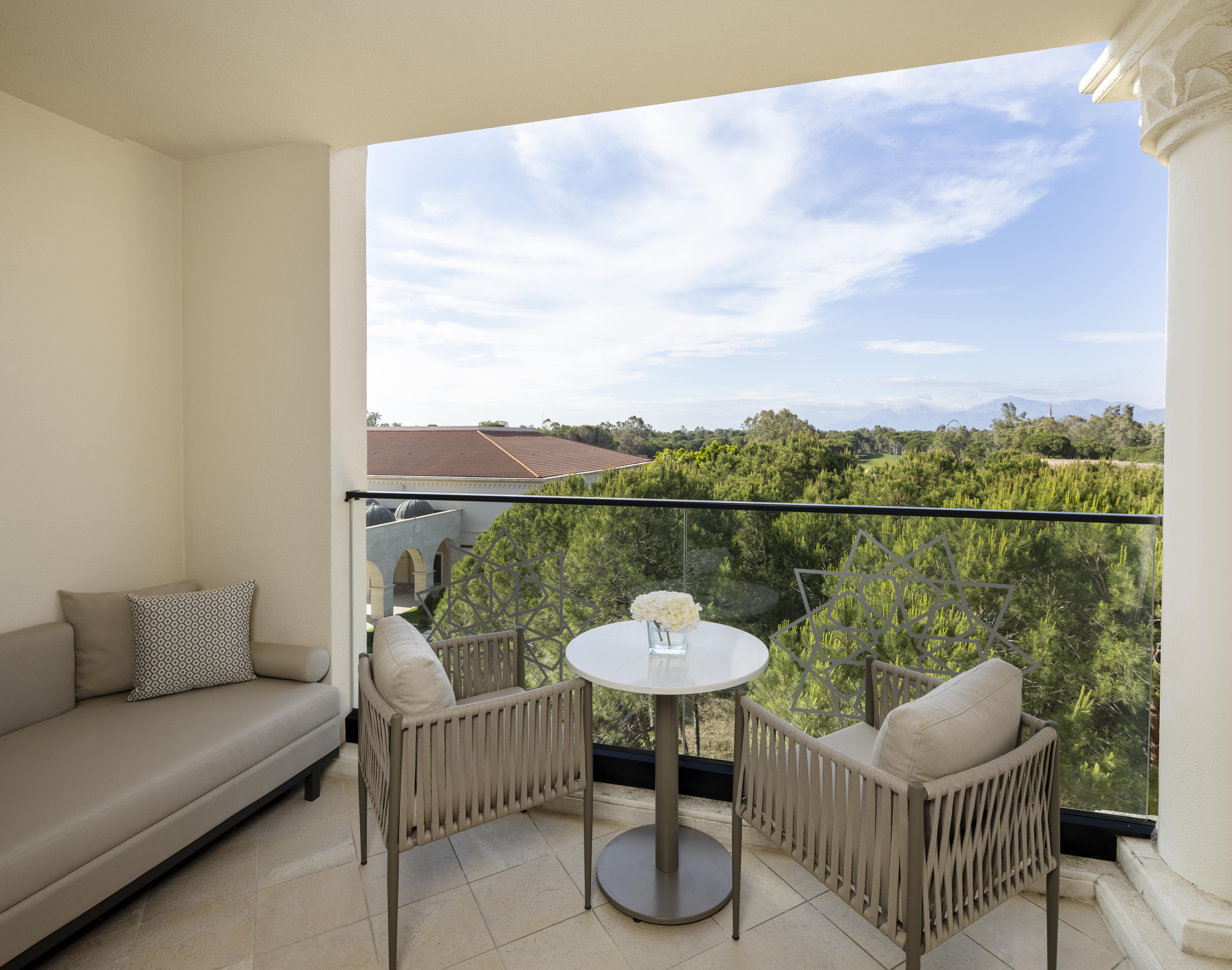 Расположение номера: в основном здании (3 этаж) Вид из номера: на гольф-поля Покрытие пола: Паркет Наполнение мини-бара: Прохладительные напитки, пиво, вода. Обновляется ежедневно. Уборка в номере: ежедневно Смена белья: по запросу Дополнительные услуги: Капсульная кофемашина Элегантный дизайн, балкон, 1 роскошная мраморная ванная комната (душевая кабина и ванна), комфортабельная зона для отдыха. |