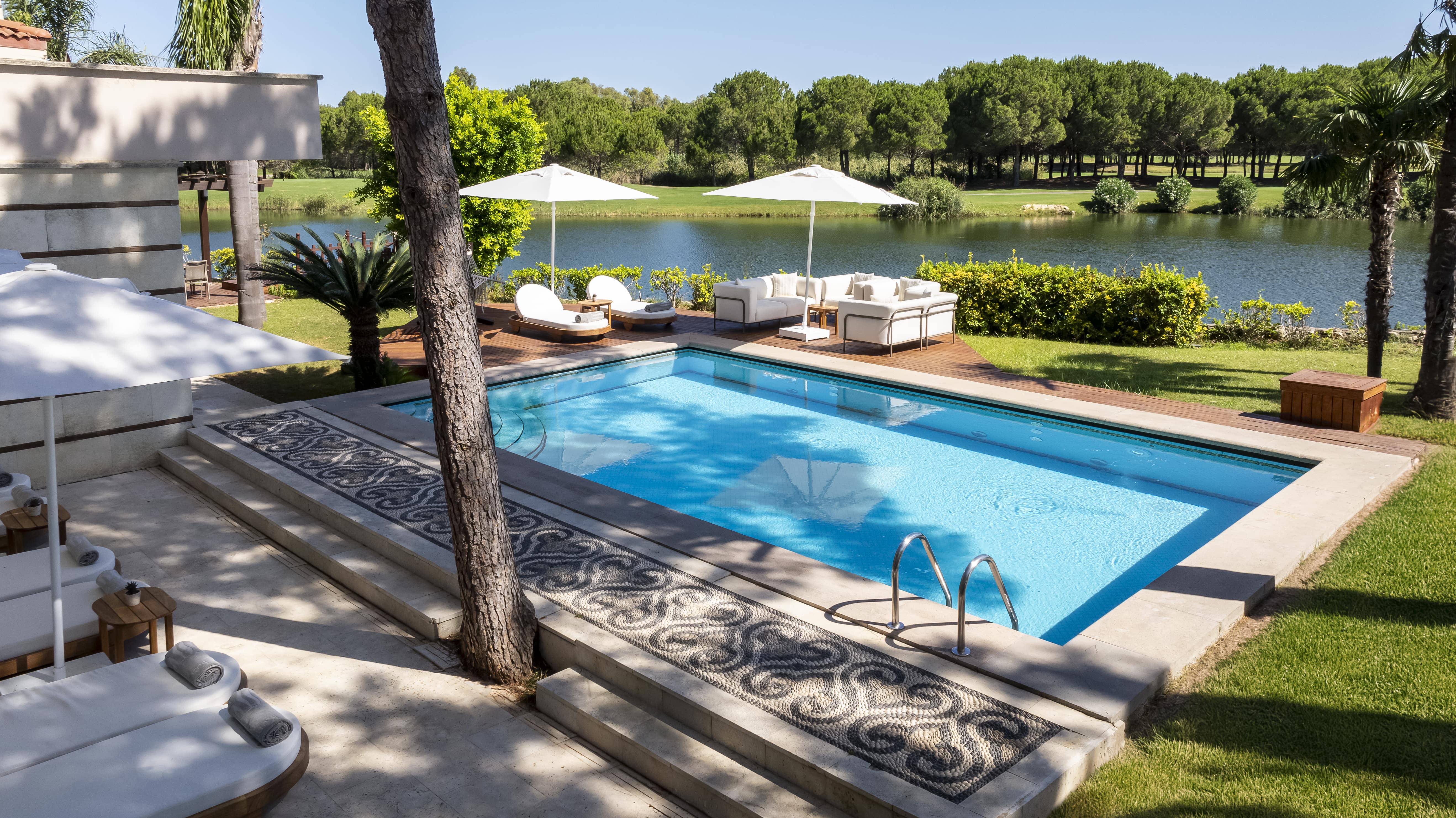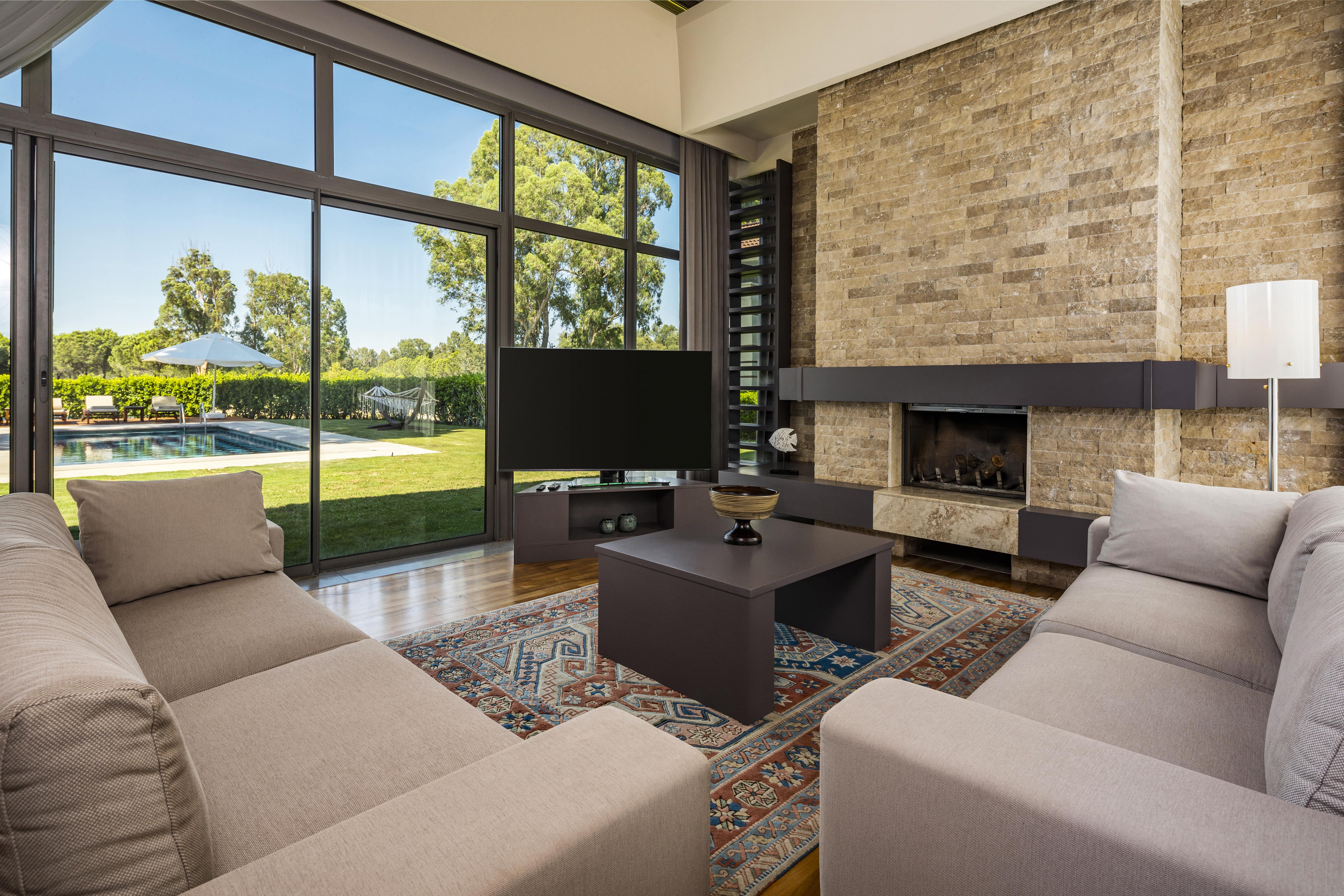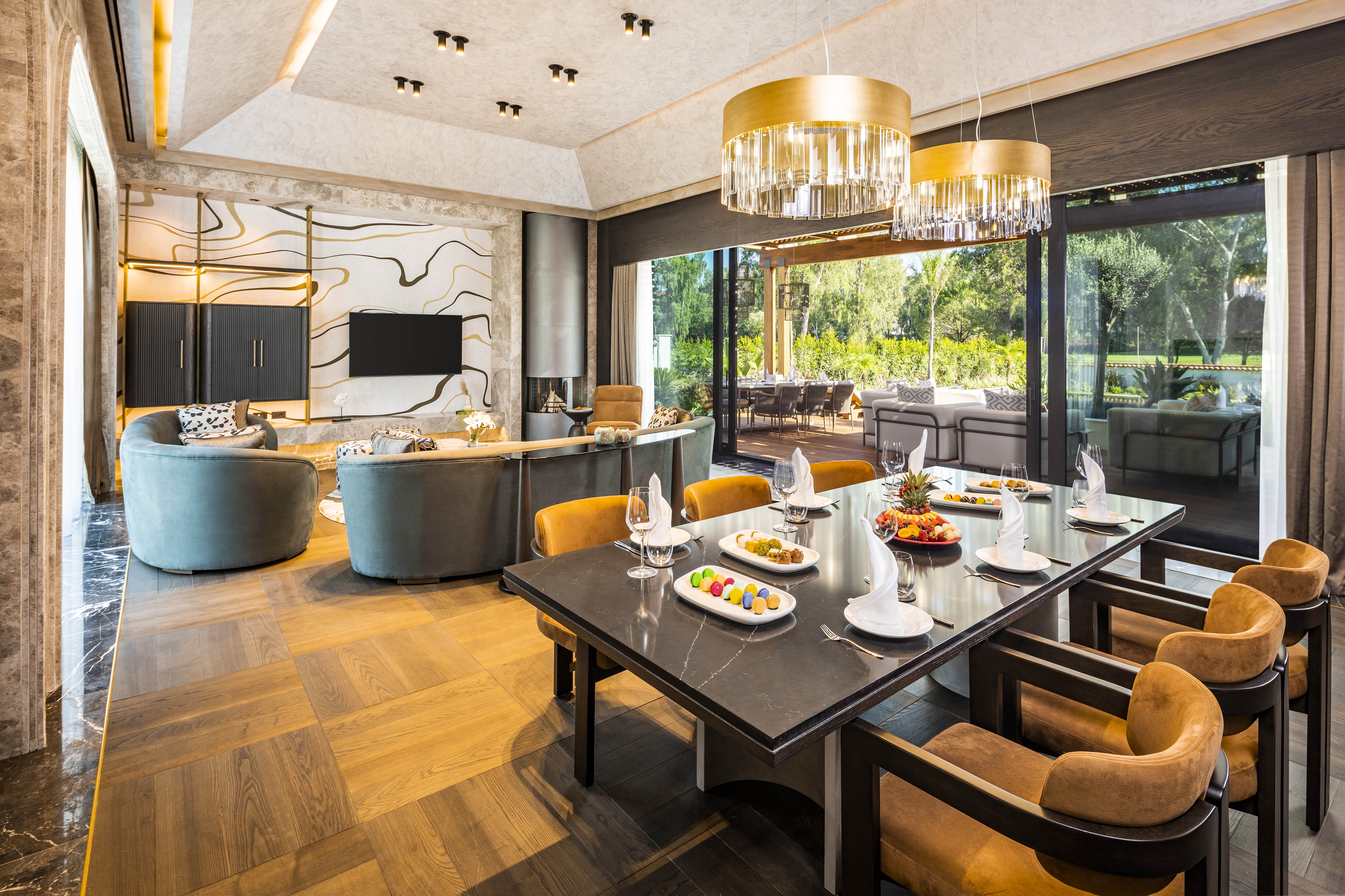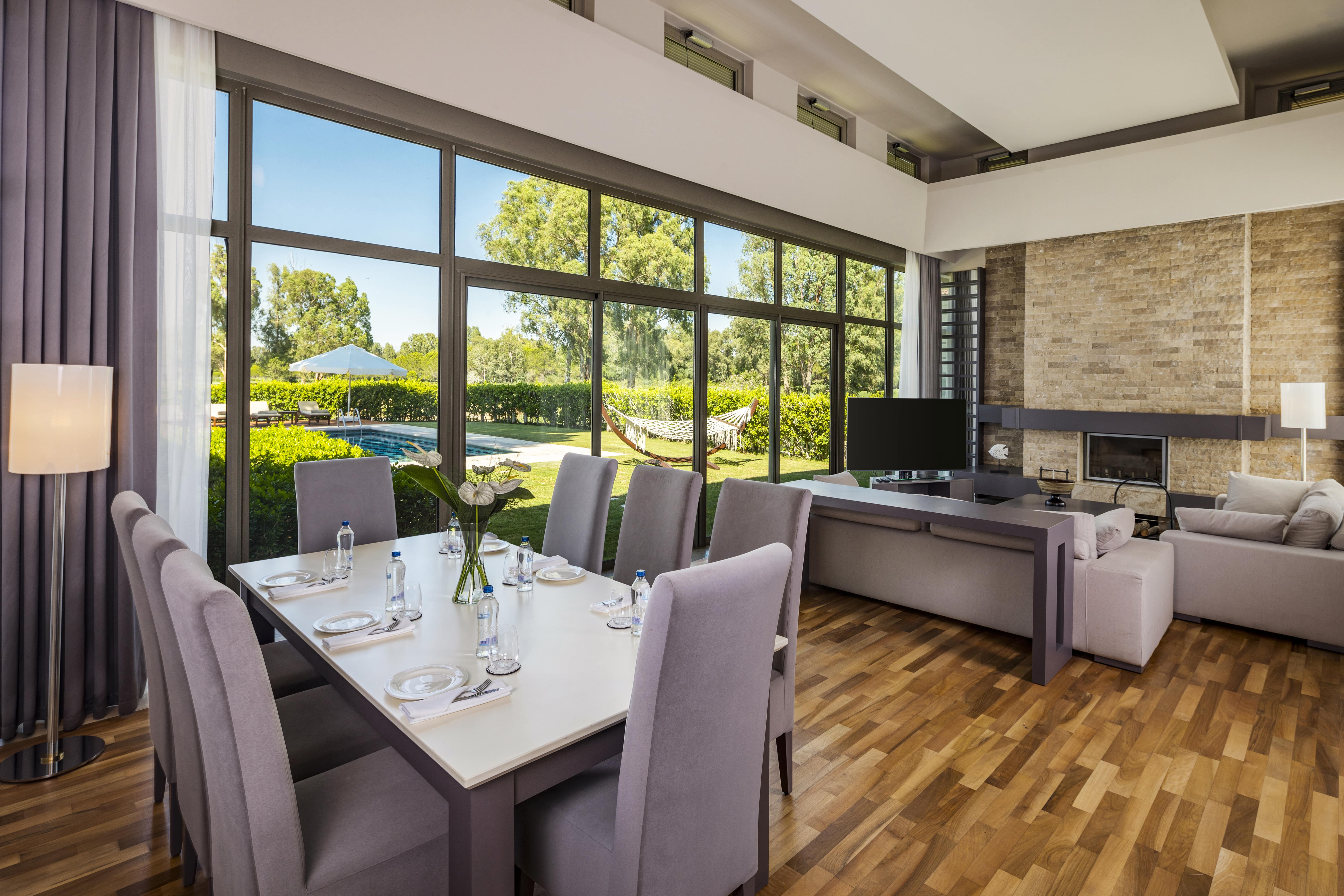 Расположение номера: Гольф поля Вид из номера: на гольф поля Дополнительные услуги: Капсульная кофемашина Спальня, роскошная ванная комната, просторная гостиная, гардеробная, cовременное оборудование, высокоскоростной интернет, ЖК телевизор, сейф, мини-бар, фен, набор косметических принадлежностей высокого качества.<br /> Общий бассейн с номерами Lagoon Villa.<br /> Бесплатное посещение Аля Карт ресторана (кроме ресторана Софра). |