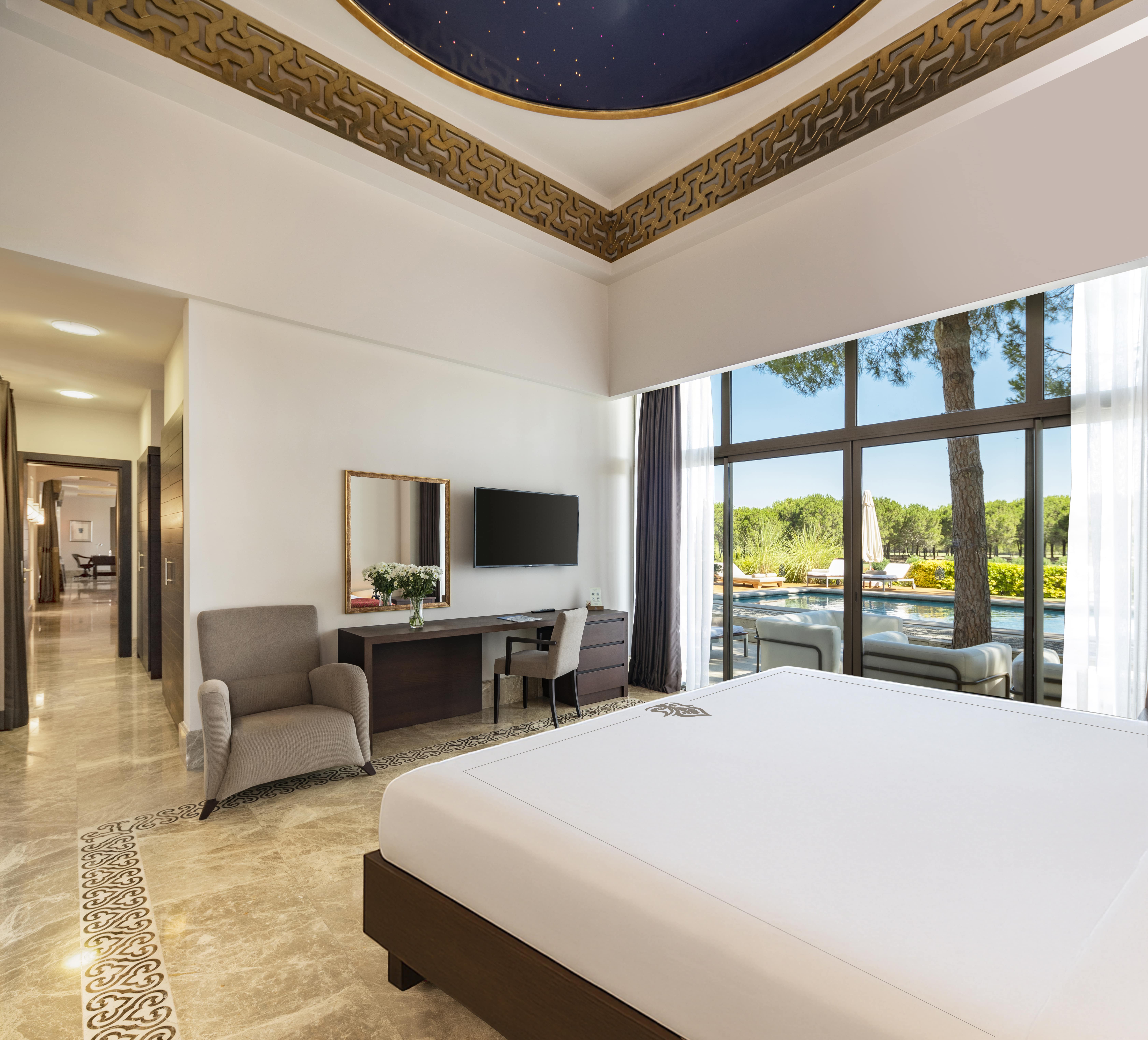 Роскошный отель класса "люкс". Расположен в живописнейшем уголке Турецкой Ривьеры - Белеке. Архитектурный стиль отеля отражает сельджукский период, предшествовавший эпохе Османской империи. Дизайн отеля вобрал в себя характеристики и символику своеобразного дизайна этой богатой эпохи, а номера всех гостей представляют собой слаженную гармонию прошлого и современности. Гости пользуются преимуществом привилегированного доступа в один из лучших в Европе гольф-клубов. В отеле, на площади 3600 кв. м, расположен один из крупнейших и роскошных СПА центров в Турции. Отель состоит из основного 4-этажного здания и 19 одноэтажных вилл, расположенных рядом с гольф-клубом.