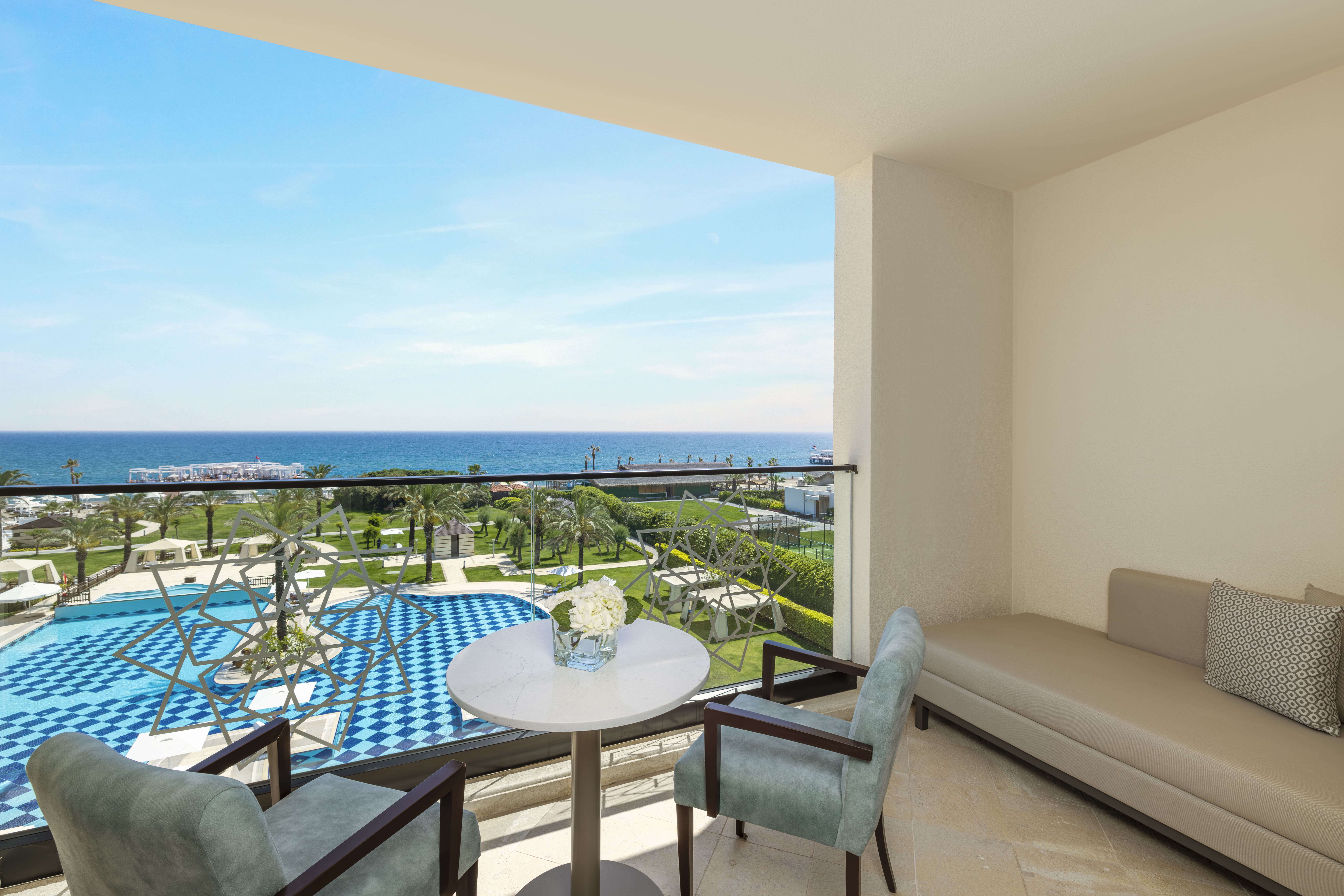 Расположение номера: в основном здании (3й этаж) Вид из номера: на море Покрытие пола: Паркет Наполнение мини-бара: Прохладительные напитки, пиво, вода. Обновляется ежедневно. Уборка в номере: ежедневно Смена белья: по запросу Дополнительные услуги: Капсульная кофемашина Элегантный дизайн номера, роскошная мраморная ванная комната, комфортабельная зона для отдыха.<br /> Меню подушек (4 вида)<br /> Подготовка номера ко сну ( Turndown)<br /> Элеганс бар <br /> Фруктовая тарелка <br /> В день приезда приветственные угощения <br /> Экспресс регистрация во время заезда |