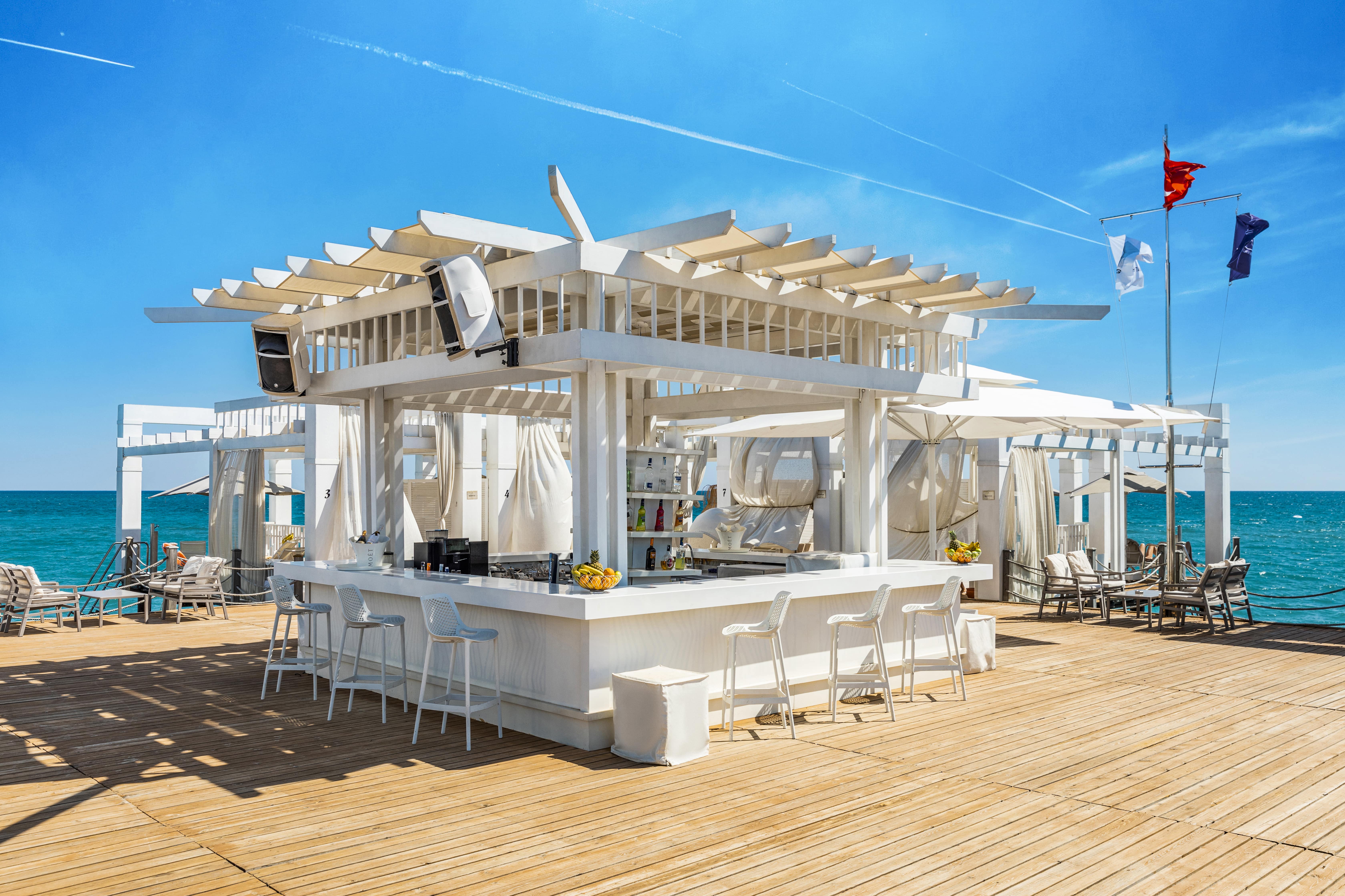 Пирс, понтон: 1 деревянный пирс 810 кв.м Территория пляжа: Собственный песчаный пляж. Длинна: 110 м Вход в море: песчаный Комментарии: Павильоны на пляже: от 100 до 250 евро/день (стоимость может меняться).<br /> Обслуживание на пляже с 10:00-18:00. |