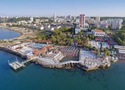 Элегантный комплекс с большой территорией и уютными номерами. Отель представляет собой одно основное 13-этажное здание Elegance, одно 5-этажное здание Club (2 лифта) и два здания Park Sera (дальние от моря, 2 лифта). Расположен на первой береговой линии, в 9 км от аэропорта города Анталья. Есть русскоговорящий персонал. |