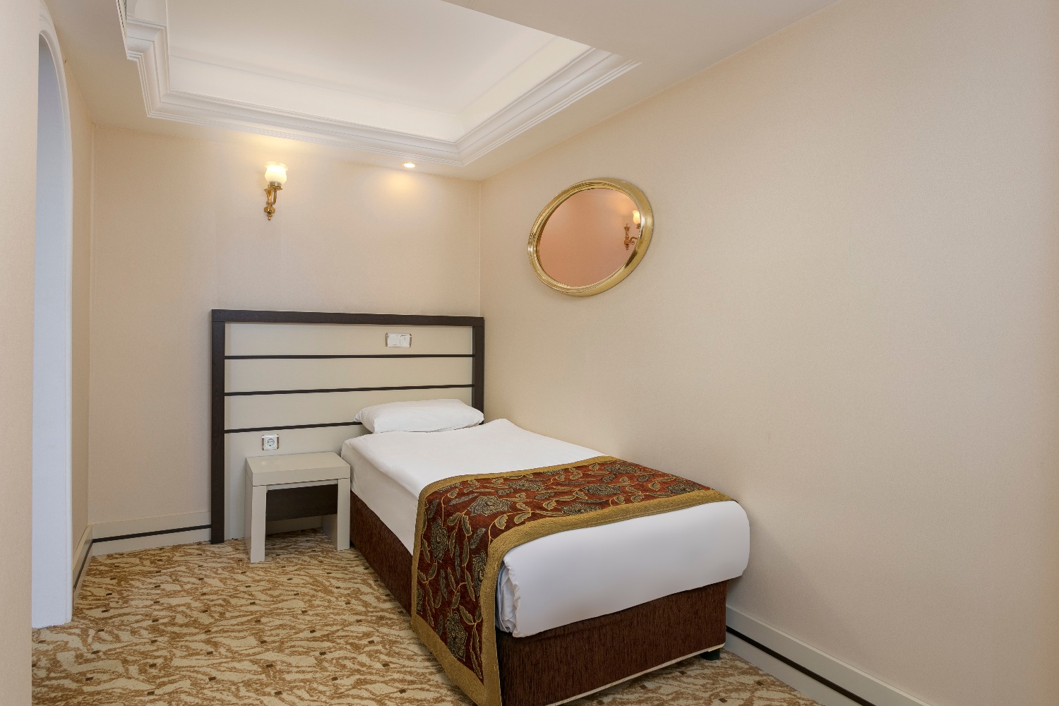 Расположение номера: в Park Sera (здание Аннекс, дальнее от моря) Вид из номера: на сад Покрытие пола: Ламинат Наполнение мини-бара: Прохладительные напитки. Пополняется ежедневно. Уборка в номере: ежедневно Балкон или терраса. Центральный кондиционер работает в зависимости от погодных условий. Размещение Single - в номерах без балкона.<br /> Последняя реновация в номерах была произведена в 2020 году (замена ванны на душ и замена напольного покрытия). |