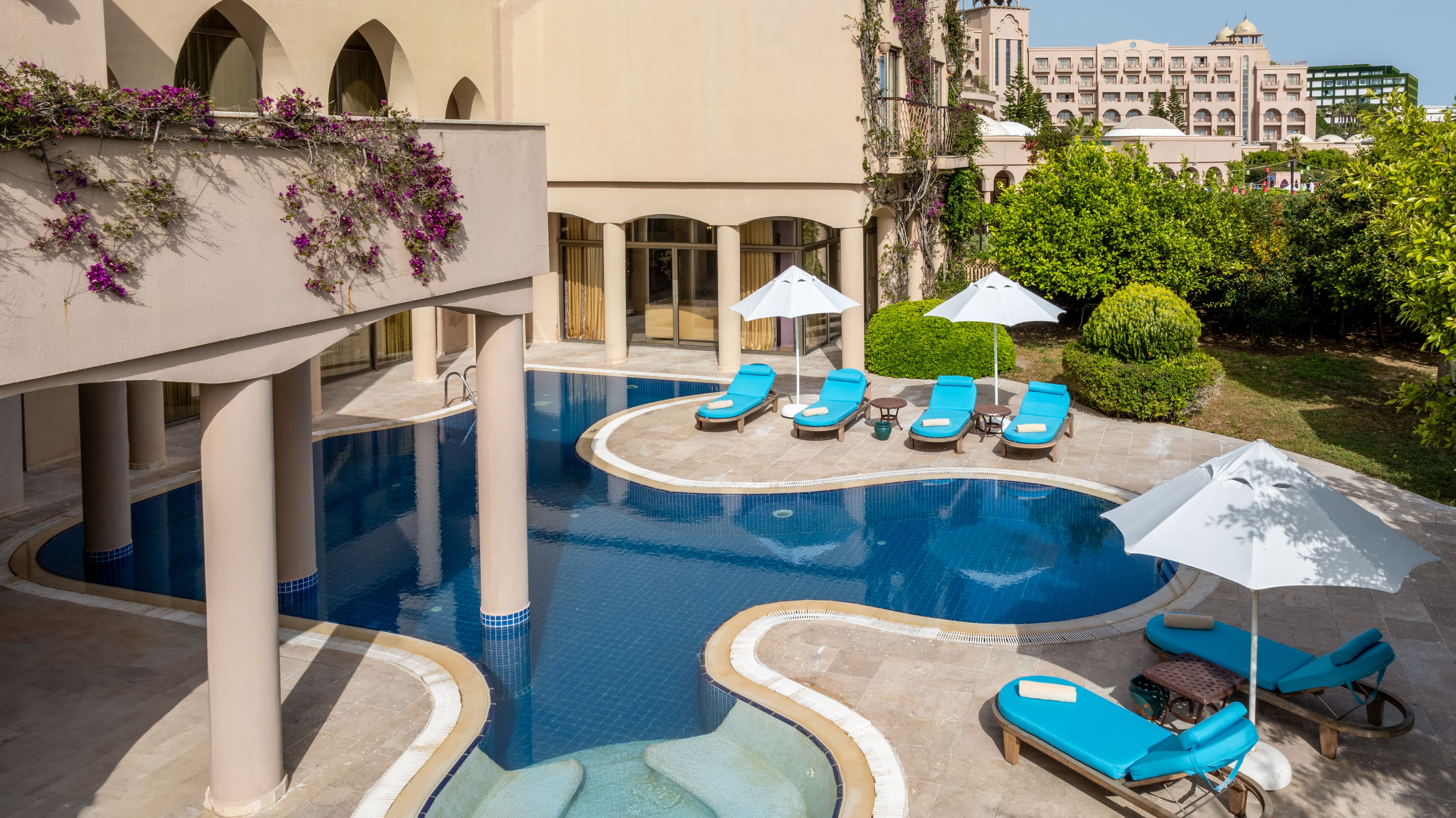 Расположение номера: в здании Pool building (на 1 этаже) Вид из номера: на бассейн Наполнение мини-бара: Прохладительные напитки, пиво, вода. Обновляется ежедневно. Уборка в номере: ежедневно Смена белья: три раза в неделю Прямой выход к общему бассейну. Шезлонги (2) и зонтик (1) у бассейна.<br /> Косметика ETRO в ванной комнате.<br /> Расширенный ассортимент напитков в мини-баре.<br /> Ежедневная доставка угощений в номер.<br /> В день заезда - фрукты, вино, шампанское. |