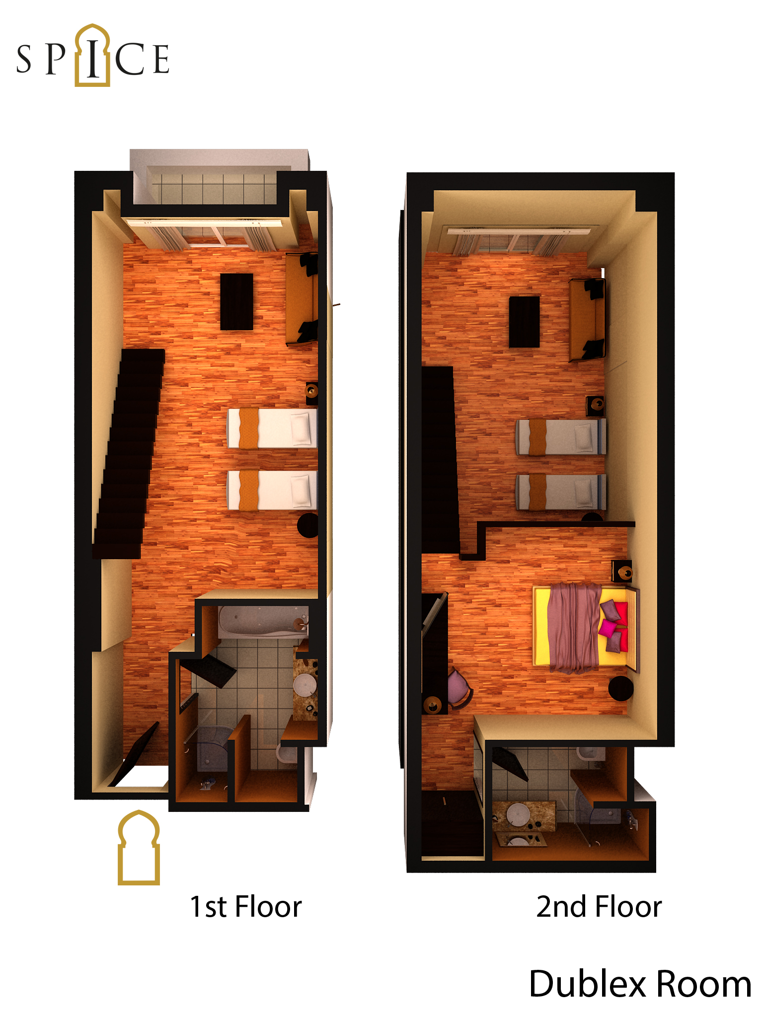 Комментарии: Двухэтажный номер. <br /> 1 тип: на первом этаже - гостиная и спальня с межкомнатной дверью. На втором этаже - спальня. <br /> 2 тип: на первом этаже - спальня. На втором этаже - гостиная и спальня с межкомнатной дверью. <br /> 2 ванные комнаты.