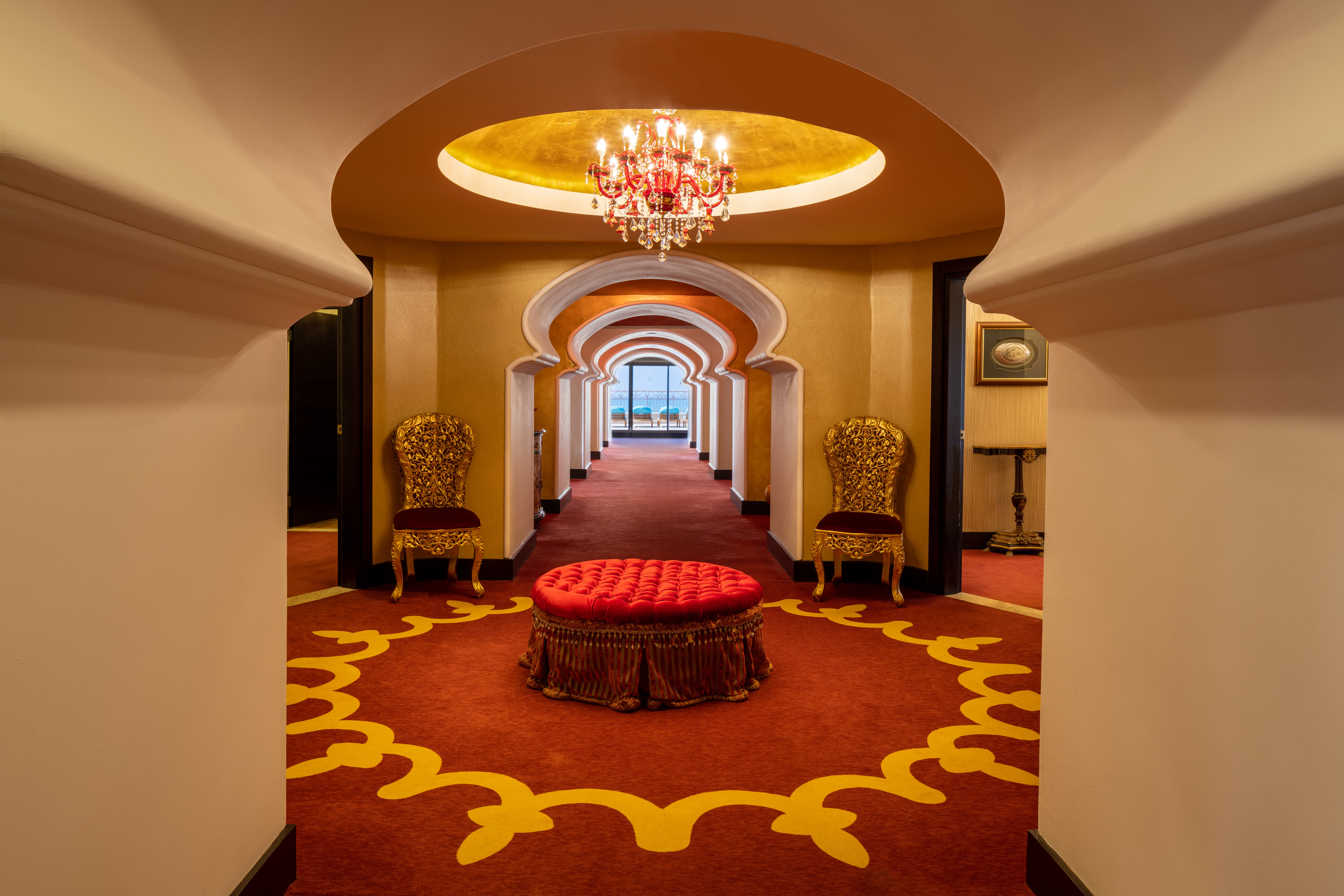 Расположение номера: в основном здании (4 этаж) Вид из номера: на море Джакузи: в одной из ванных комнат и на террасе Наполнение мини-бара: вода, прохладительные напитки, пиво. Пополняется ежедневно. Уборка в номере: ежедневно Смена белья: три раза в неделю Номер данной категории находится в основном здании отеля и занимает площадь 500 м2 + 180 м2 терраса (с джакузи, шезлонгами, зонтиком и летней мебелью). <br /> Номер состоит из просторного коридора с зеркальной уборной, столовой с обеденным <br /> столом на 12 персон, кухни, рабочего кабинета, гостиной с мягкой мебелью и ТВ салоном (widescreen LCD TV & система звука Surround), трех спален с ванными комнатами (одна из них с джакузи, сауной, турецкой баней, комнатой для массажа, гардеробной).<br /> Покрытие пола – ковёр и паркет. <br /> Также, по запросу, возможен вариант присоединения 6 стандартных номеров.<br /> <br /> VIP концепция:<br /> - Индивидуальный VIP трансфер<br /> - Экспресс Check-in в номере<br /> - VIP ресторан Defne на территории вилл <br /> - 4 ресторана a’la carte и обслуживание в номерах<br /> - Отдельная зона на пляже с павильонами<br /> - Бар с алкогольными и безалкогольными напитками<br /> - Индивидуальное обслуживание сотрудниками VIP-residence |