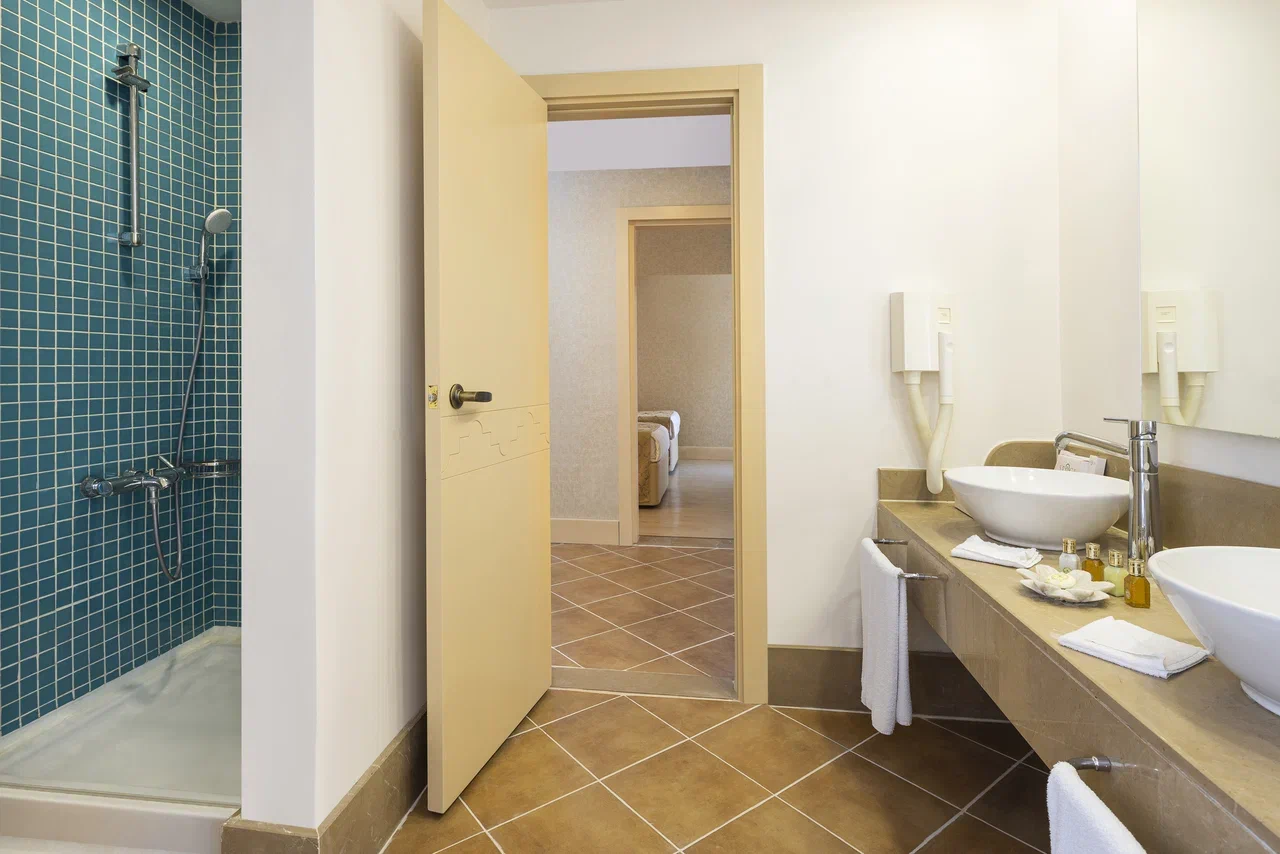 Расположение номера: в основном здании (на всех этажах) Вид из номера: на сад/на море Покрытие пола: Паркет Наполнение мини-бара: вода, прохладительные напитки, пиво. Пополняется ежедневно. Уборка в номере: ежедневно Смена белья: три раза в неделю Два типа номеров. 1й - одна спальня и гостиная, 2й - две спальни (есть межкомнатная дверь).<br /> В спальнях 1 двуспальная кровать или 2 односпальные кровати.<br /> 1 ванная комната (ванна или душ). |