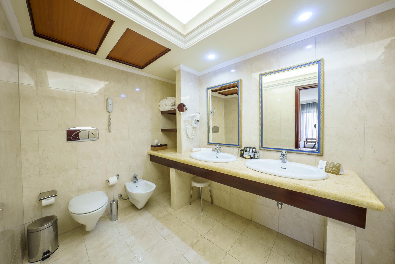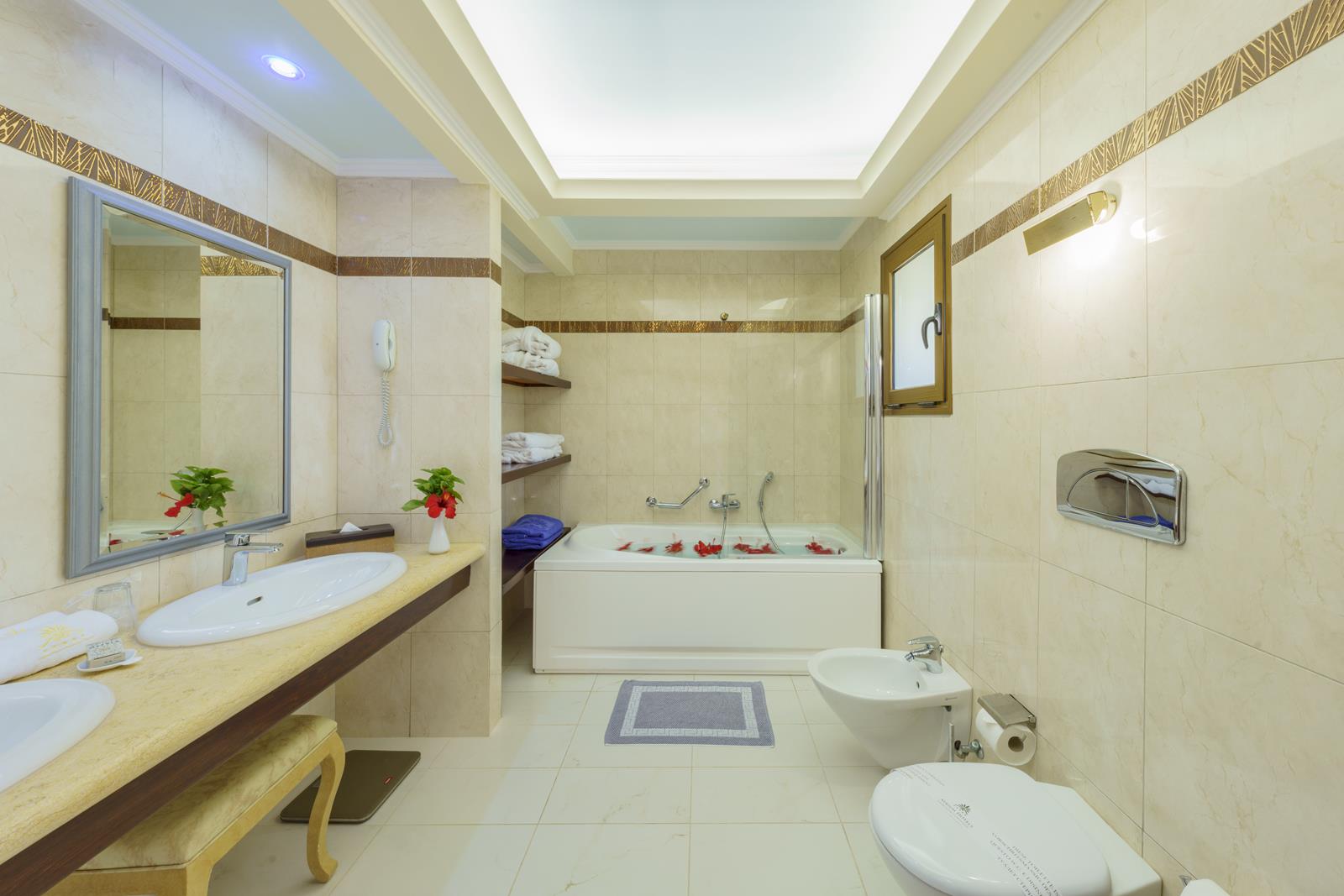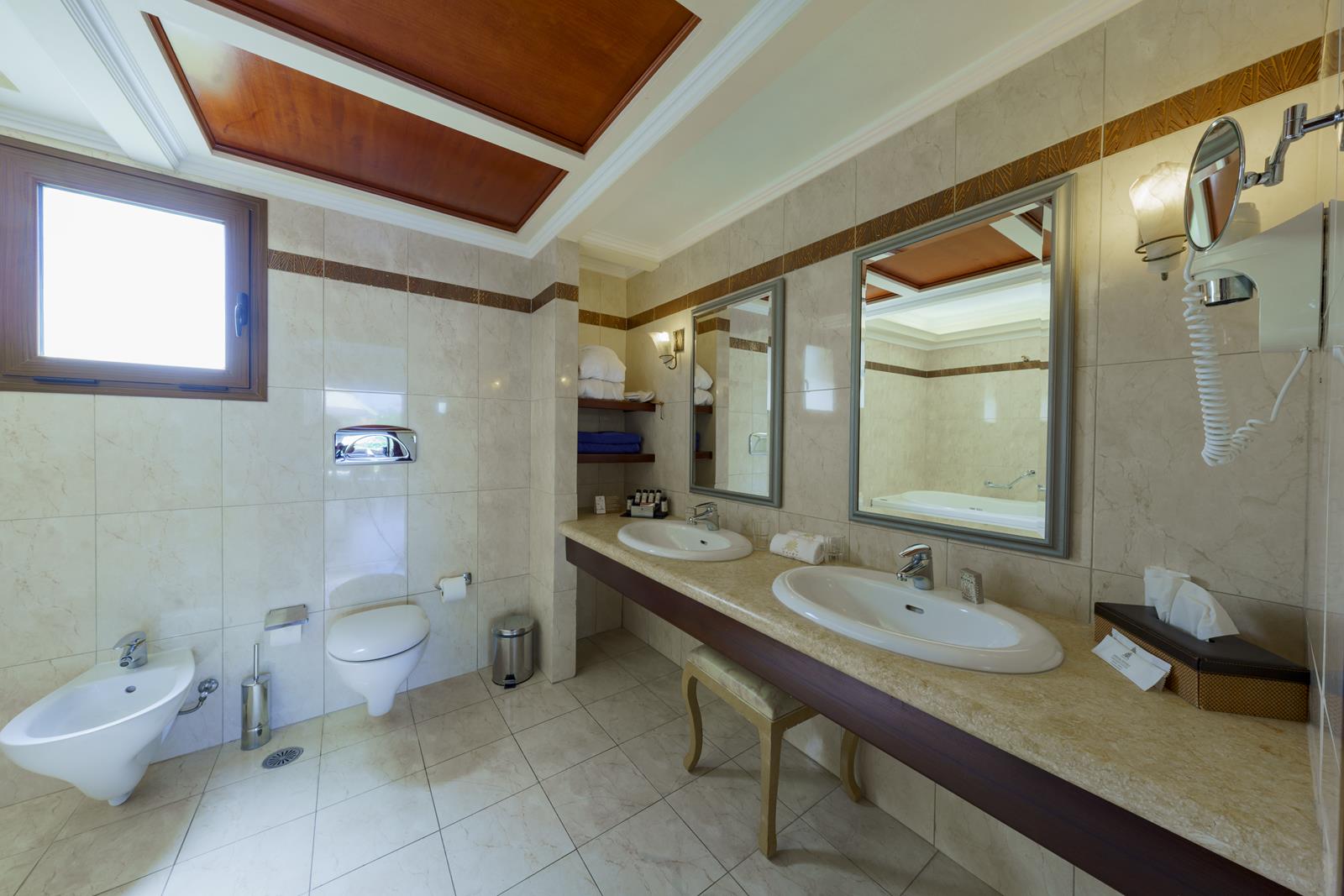 Комментарии: одна главная спальня и отдельная гостиная/спальня<br /> <br /> ванна/туалет, фен, индивидуальный кондиционер (май-октябрь), спутниковое телевидение, мини-бар (платно), сейф, телефон с прямым набором номера, Wi-Fi, халаты и тапочки, приборы для приготовления кофе и чая, кофемашина Nespresso, балкон или терраса.<br /> Приветственное предложение: вода, местное вино и фрукты во всех номерах по прибытии.<br /> Напольное покрытие – ламинат; смена постельного белья и уборка номера – ежедневно<br /> <br /> Во всех виллах есть ванная комната с туалетом, джакузи, халаты и тапочки, фен, полотенца для бассейна, принадлежности для чая/кофе, кофемашина Nespresso. Индивидуальное кондиционирование (май-октябрь), спутниковое телевидение с музыкальным каналом, DVD-плеер, мини-бар (платно), электронный сейф, телефон с прямым набором номера, подключение к Интернету, возможность завтрака по меню в отдельной зоне в главном зале. ресторан, карта участника спа-центра с бесплатным посещением сауны, хаммама и многофункциональных бассейнов. Все виллы имеют собственный бассейн с подогревом и террасу с беседкой.<br /> Приветственный подарок: вода, местное вино и фрукты во всех номерах по прибытии.<br /> Гости виллы получают игристое вино вместо местного вина.