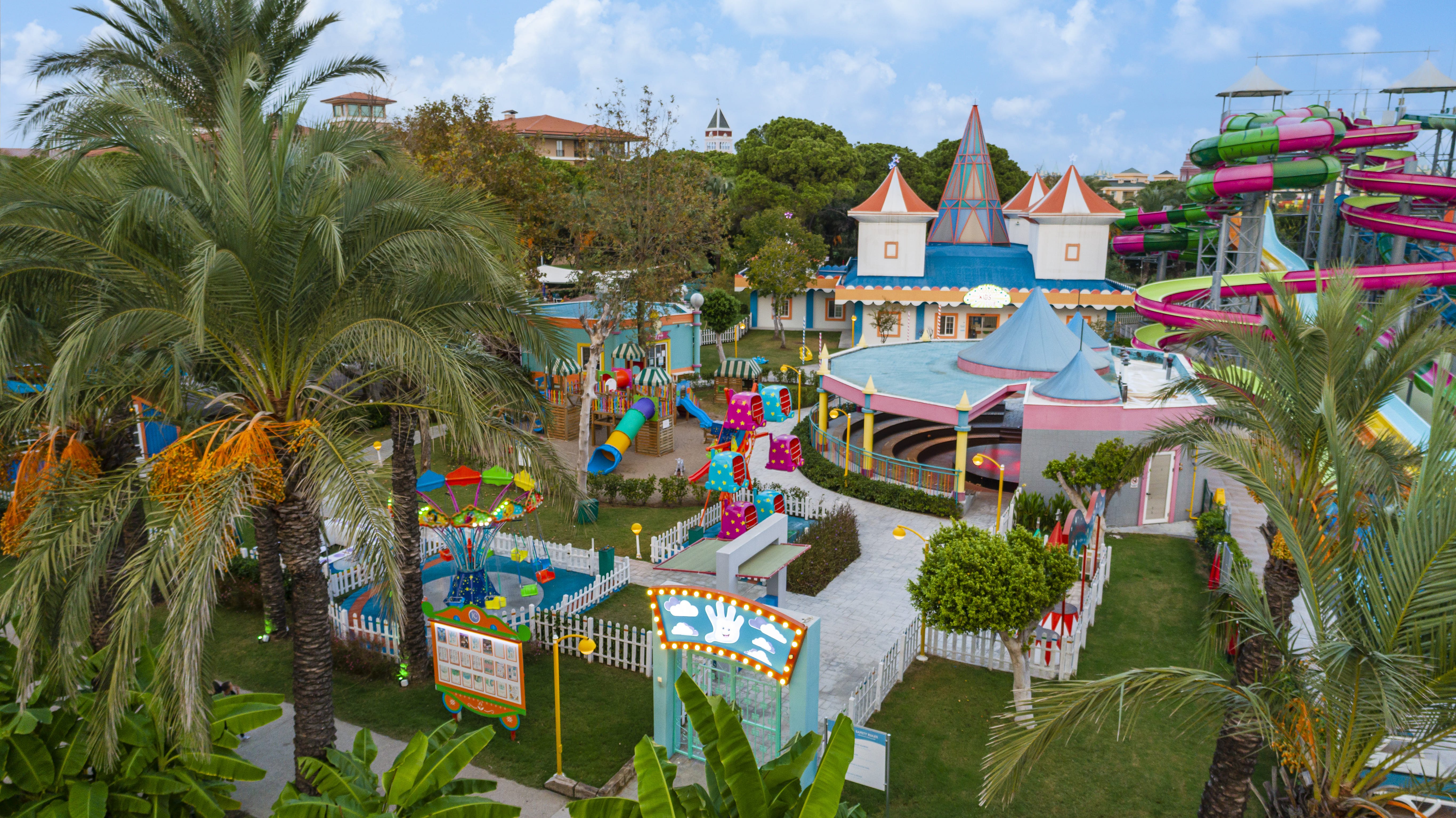 | Комментарии | 3 открытых бассейна (2 из них подогреваются до 1/05), 1 крытый бассейн (подогрев до 1/05). Детский аквапарк (подогрев до 1/05).<br /> Baby club для детей 0-4 лет (под присмотром родителей), работает 10:00 – 12:30 / 13:30 - 19:00. <br /> Мини-клуб для детей 5-12 лет, работает 08:00 – 12:30/13:30 - 19:00/ 20:00 - 24:00. <br /> Teen`s club для подростков 12-16 лет, работает 10:00 – 12:30 / 13:30 - 19:00/ 20:00 - 24:00. <br /> Услуги няни - примерно 20 евро/час.<br /> Аренда детских колясок - примерно 15 евро/день.<br /> Детский буфет в основном ресторане (завтрак, обед, ужин).<br /> В основном ресторане можно воспользоваться блендером и микроволновой печью для приготовления детского питания (продукты на диетическом столе). |