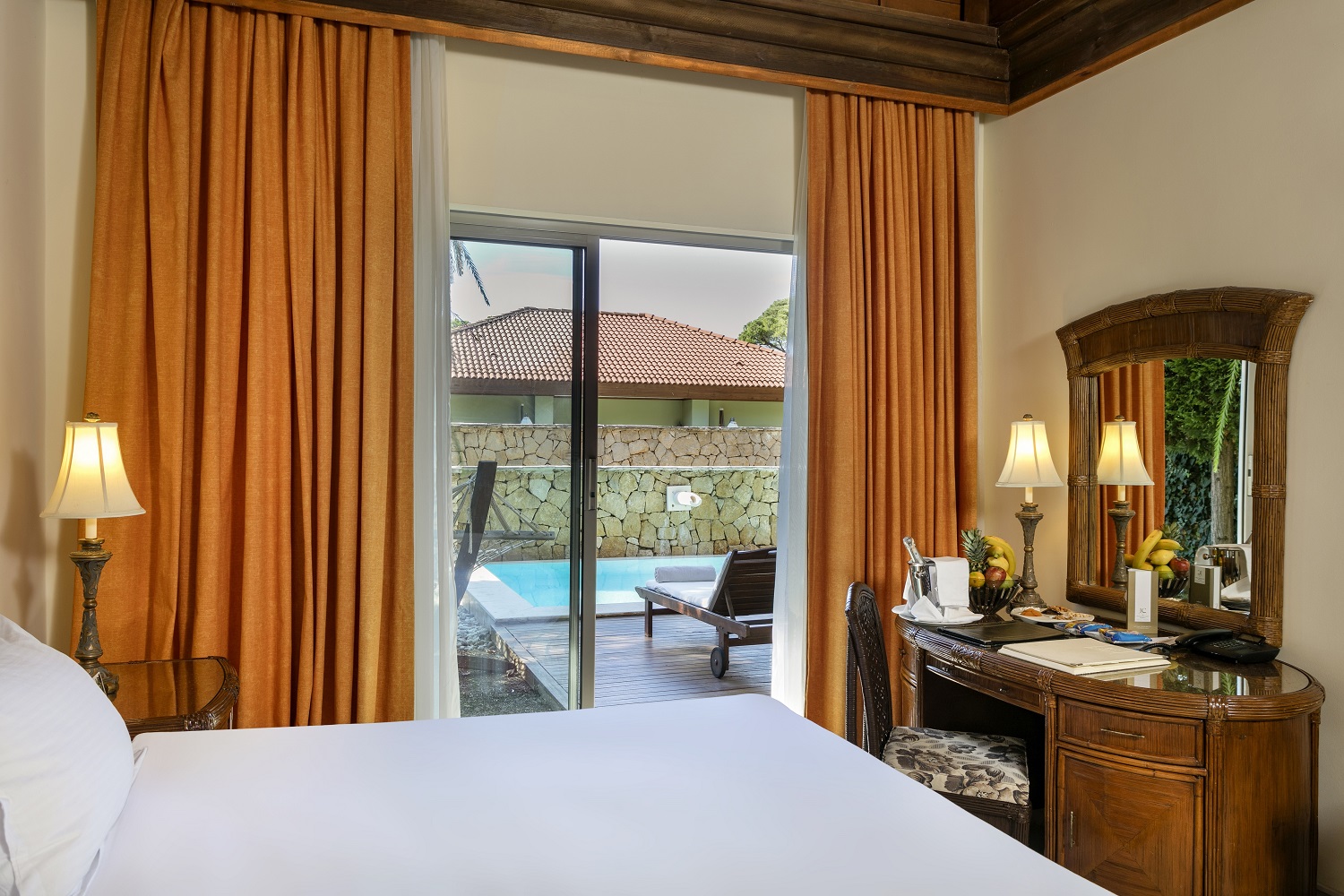 Комментарии: Отдельный выход к бассейну (общий бассейн на несколько номеров). <br /> Шезлонг, зонт. 2 ванные комнаты.<br /> Номера реновированы в 2020 г.<br /> ВИП-концепт:<br /> - встреча с шампанским и угощениями и сопровождение в номер.<br /> - расширенный мини-бар (импортные алкогольные напитки 0,05 л).<br /> - в номере свежие цветы.<br /> - пляжные полотенца.<br /> - скидка на услуги прачечной 50 % (услуги химчистки – не включены)<br /> - бесплатная резервация а ла карт ресторанов - один раз (кроме Blue Fish, Red Steak&Wine и Wabi Teppanyaki).