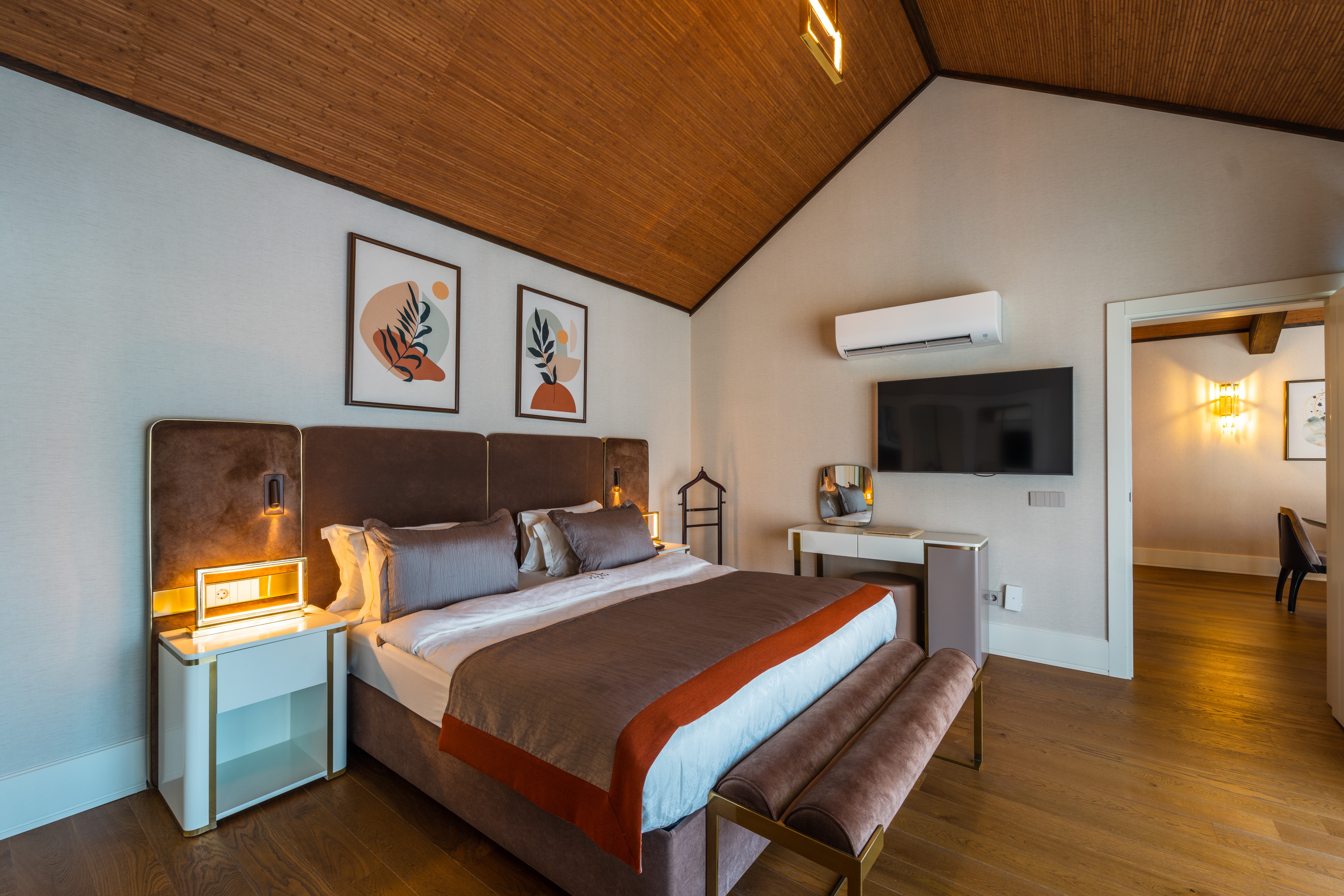 Вид из номера: на бассейн/на сад Покрытие пола: Плитка, Деревянный пол Наполнение мини-бара: Безалкогольные и алкогольные напитки. Пополняется ежедневно. Уборка в номере: ежедневно Смена белья: два раза в неделю Первая спальня (двуспальная кровать) – душевая комната с джакузи и подогреваемым полом.<br /> Две спальни (двуспальные кровати) – душевые комнаты с подогреваемым полом. <br /> Гостиная с американской кухней.<br /> Огражденный приватный сад с бассейном (38м2), хамам, массажный стол, мебель и аксесcуары.<br /> ВИП-концепт:<br /> - встреча с шампанским и угощениями и сопровождение в номер.<br /> - расширенный мини-бар (импортные алкогольные напитки 0,7 л).<br /> - в номере вино, фрукты, орешки, чипсы.<br /> - в номере свежие цветы.<br /> - приготовление номера ко сну.<br /> - пляжные полотенца.<br /> - услуги прачечной включены в стоимость (услуги химчистки – не включены).<br /> - 1 павильон на пляже. <br /> - бесплатная резервация а ла карт ресторанов (oдин paз в тeчeниe oтдыxa) |