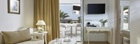 Покрытие пола: Плитка Уборка в номере: Ежедневно Смена белья: 3 раза в неделю Комфортабельные люксы находятся в привилегированной части в полностью отреставрированных домиках в критском стиле. Они расположены вдоль побережья с прямым выходом на пляж. Люксы обставлены элегантной мебелью и состоят из 2 отдельных спален и гостиной с диваном, креслом и журнальным столиком. Все апартаменты имеют две отдельные ванные комнаты с мраморной ванной с ванной, душевой кабиной и туалетом. Α частная большая терраса с частным бассейном 60 кв.м, шезлонгами и зонтиками, открытая зона отдыха со стульями и столом. |