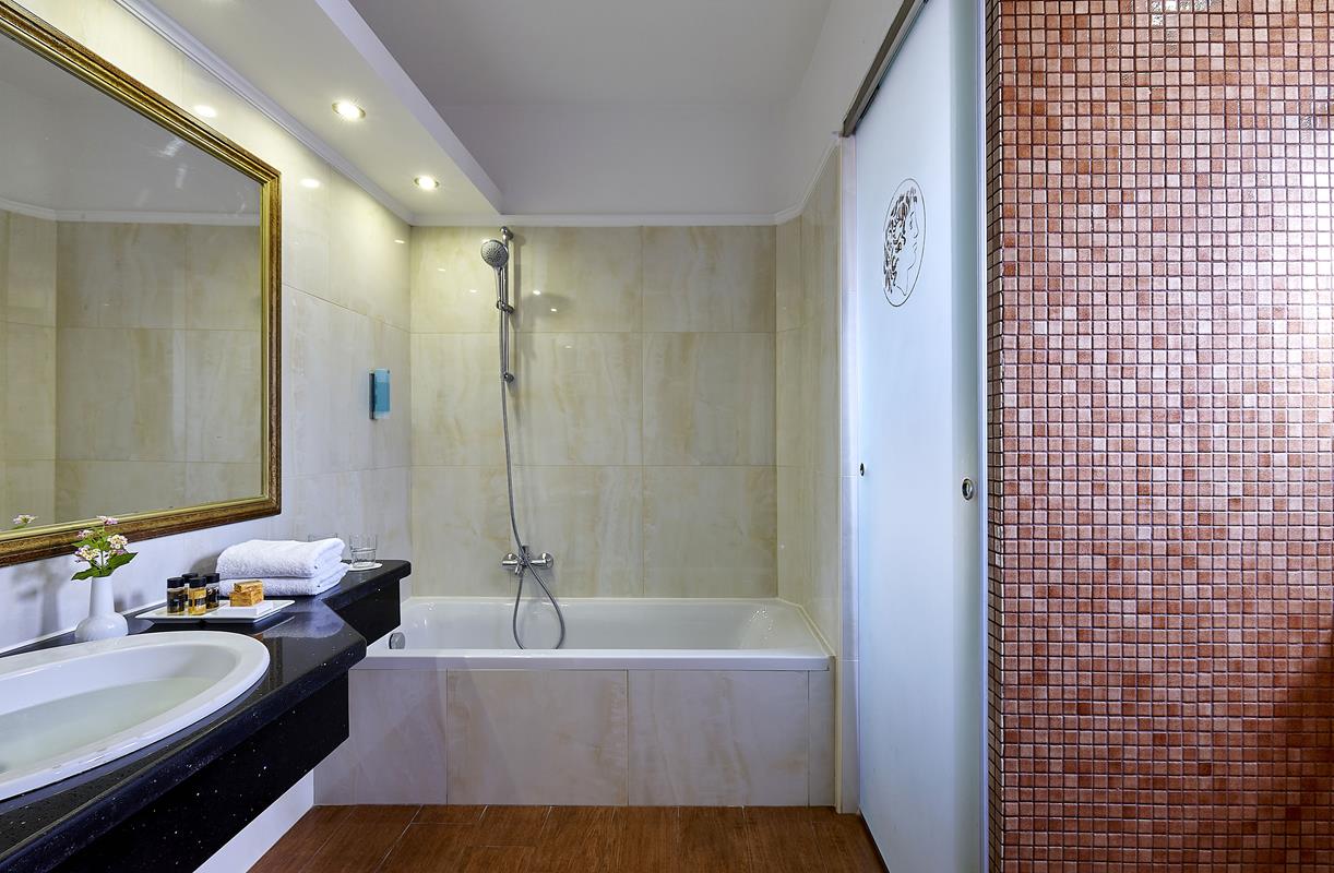 Покрытие пола: Плитка Уборка в номере: Ежедневно. Смена белья: 3 разa в неделю. 35-45 кв.м<br /> Двухкомнатный номер. Ванная/душ. Балкон/терраса. Дополнительные кровати - 2 софы. |