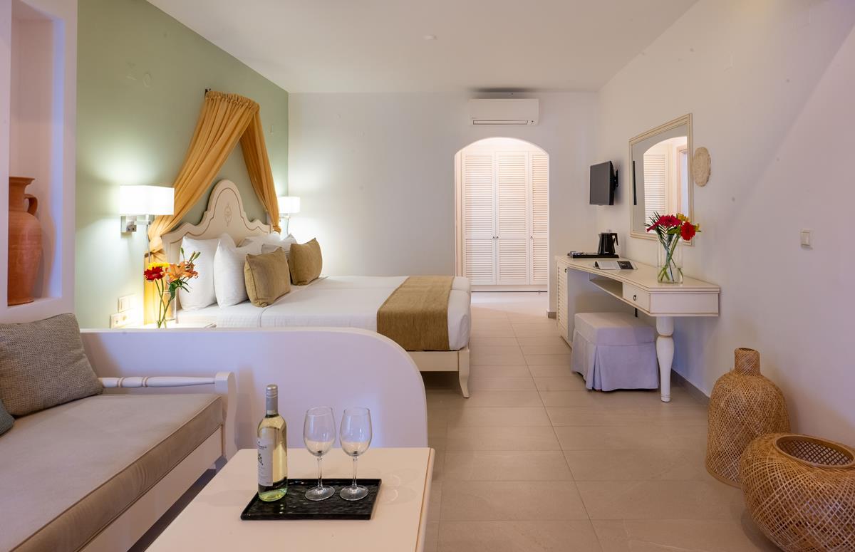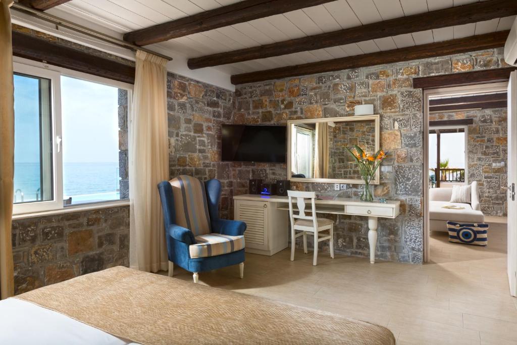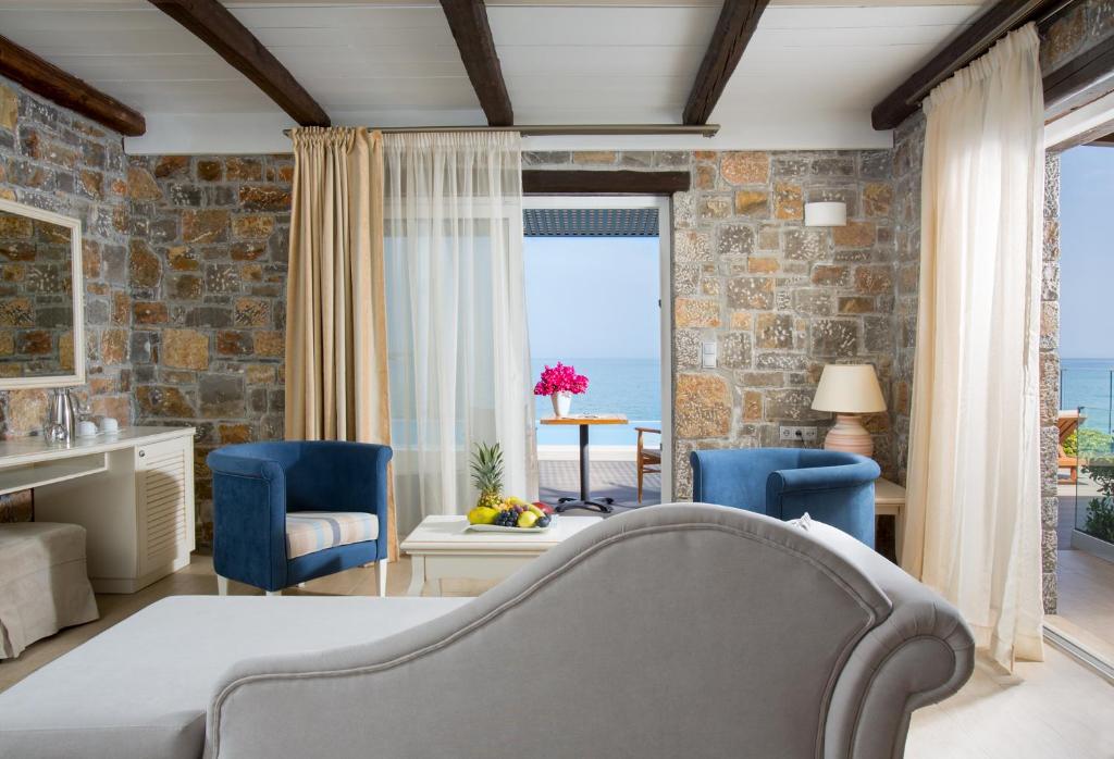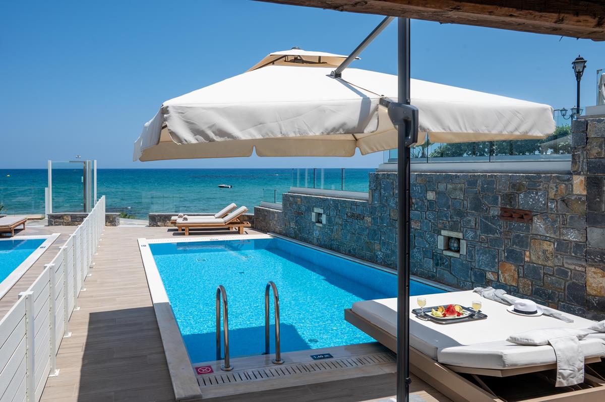 Комментарии: Комфортабельные люксы находятся в привилегированной части в полностью отреставрированных домиках в критском стиле. Они расположены вдоль побережья с прямым выходом на пляж. Люксы обставлены элегантной мебелью и состоят из 2 отдельных спален и гостиной с диваном, креслом и журнальным столиком. Все апартаменты имеют две отдельные ванные комнаты с мраморной ванной с ванной, душевой кабиной и туалетом. Α частная большая терраса с частным бассейном 60 кв.м, шезлонгами и зонтиками, открытая зона отдыха со стульями и столом.