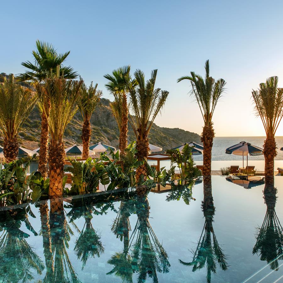 Отель расположен на северо-восточном побережье острова Крит в частной бухте, в 15 км от Элунды и 50 минутах езды от аэропорта Ираклиона. Отель находится на холме и представляет собой одно главное здание, в котором расположены ресепшн, спа-центр, рестораны и бары, конференц-залы, магазины, а также комплекс зданий на 8 уровнях, где расположены номера. На территории отеля есть три фуникулера, 4 лифта. По территории для удобства курсируют мини-кары. В 300 м от отеля есть автобусная остановка. КОНЦЕПЦИЯ "ЛЕТО 2023". |