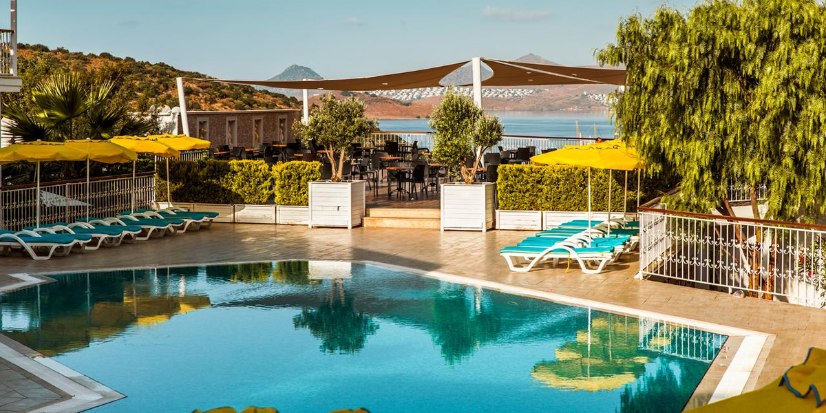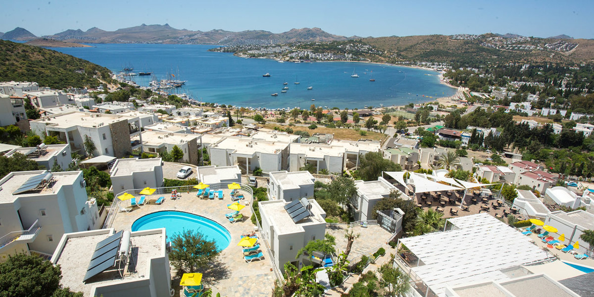 Отель расположен в 2 км от поселка Гюмбет, в 4 км от города Бодрум, в 600 м от пляжа. Состоит из одного 5-ти этажного главного здания (1 лифт) и комплекса 2-х этажных бунгало. Отель для спокойного отдыха. КОНЦЕПЦИЯ "ЛЕТО 2020"