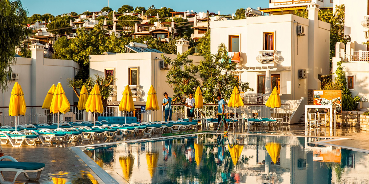 Отель расположен в 2 км от поселка Гюмбет, в 4 км от города Бодрум, в 600 м от пляжа. Состоит из одного 5-ти этажного главного здания (1 лифт) и комплекса 2-х этажных бунгало. Отель для спокойного отдыха. КОНЦЕПЦИЯ "ЛЕТО 2020" |