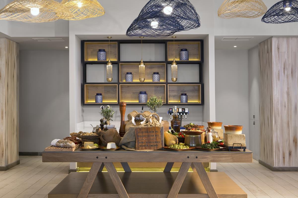 Рестораны a la carte/шведский стол: Таверна Akrogiali :<br /> o 11:00 – 17:30 Напитки, кофе, вода, безалкогольные напитки, соки, местное вино и разливное пиво.<br /> o 11:00 – 17:30 Мороженое<br /> o 13:00 – 15:30 Греческий и средиземноморский шведский стол в таверне Akrogiali и барбекю по воскресеньям.<br /> o 18:30 – 21:30 Ужин по меню / Традиционные критские рецепты<br /> Гостям бесплатно предоставляются все блюда по меню, а также широкий выбор напитков, включая воду, безалкогольные напитки. Hапитки и соки; местное разливное пиво и вино. Свежая рыба и омары подаются по запросу и за дополнительную плату, а за дополнительную плату можно приобрести разнообразные превосходные греческие вина.<br /> Бронирование необходимо сделать минимум за 1 день до 20:00.<br /> <br /> Piazza d'Italia<br /> o 18:30 – 21:30 Ужин по меню.<br /> Бронирование необходимо сделать минимум за 1 день до 20:00. Дресс-код на ужин <br /> <br /> Taka - Taka РЕСТОРАН СРЕДИЗЕМНОМОРСКОЙ УЛИЧНОЙ ЕДЫ <br /> o 12:30 – 17:30 Средиземноморская уличная еда<br /> o 15:00 – 17:30 Блинчики, вафли и мороженое<br /> <br /> Местная таверна<br /> o 13:00 – 15:00 ежедневно (кроме воскресенья)<br /> o 19:00 – 21:30 ежедневно (кроме субботы)<br /> Бронирование необходимо сделать за 1 день до 20:00. Доступно один раз за весь период проживания