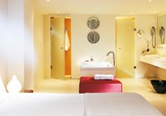 Комментарии: Внутренняя площадь 85 кв.м, терраса 50 кв.м, бассейн 18 кв.м.<br /> Номера представляют собой спальную комнату открытого плана, совмещенную с гостиной зоной. Деревянные раздвигающиеся двери ведут в экстравагантную ванную комнату с душевой кабиной,раковиной и туалетным столиком, а также с фитнес зоной, оборудованной тренажерами. Вторая спальная комната для детей имеет отдельный вход через прихожую. Просторная терраса ведет к частному бассейну с контролируемой температурой воды (подогрев выше 25°С по запросу за доп. плату) и противотоком, позволяющим осуществить дополнительные тренировки.
