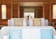 Комментарии: Открытого плана. Кровать размера "king-size" рядом с дверью балкона, обеспечивающая великолепный вид на море, и дополнительный диван-кровать. Белый деревянный пол. Балкон с открытой обеденной зоной. Складывающиеся стеклянные балконные двери превращают номер в огромный балкон. Гардеробная. Эспрессо-машина. Меню подушек. Частная беседка на пляже вилл.