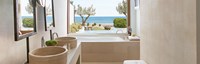 Расположение номера: У моря, 2-й или 3-й этаж. Корпус Lagoon Уборка в номере: Ежедневно Смена белья: 3 раза в неделю Открытого плана. Кровать размера "king-size" рядом с дверью балкона, обеспечивающая великолепный вид на море, и дополнительный диван-кровать. Белый деревянный пол. Балкон с открытой обеденной зоной. Складывающиеся стеклянные балконные двери превращают номер в огромный балкон. Гардеробная. Эспрессо-машина. Меню подушек. Частная беседка на пляже вилл. |