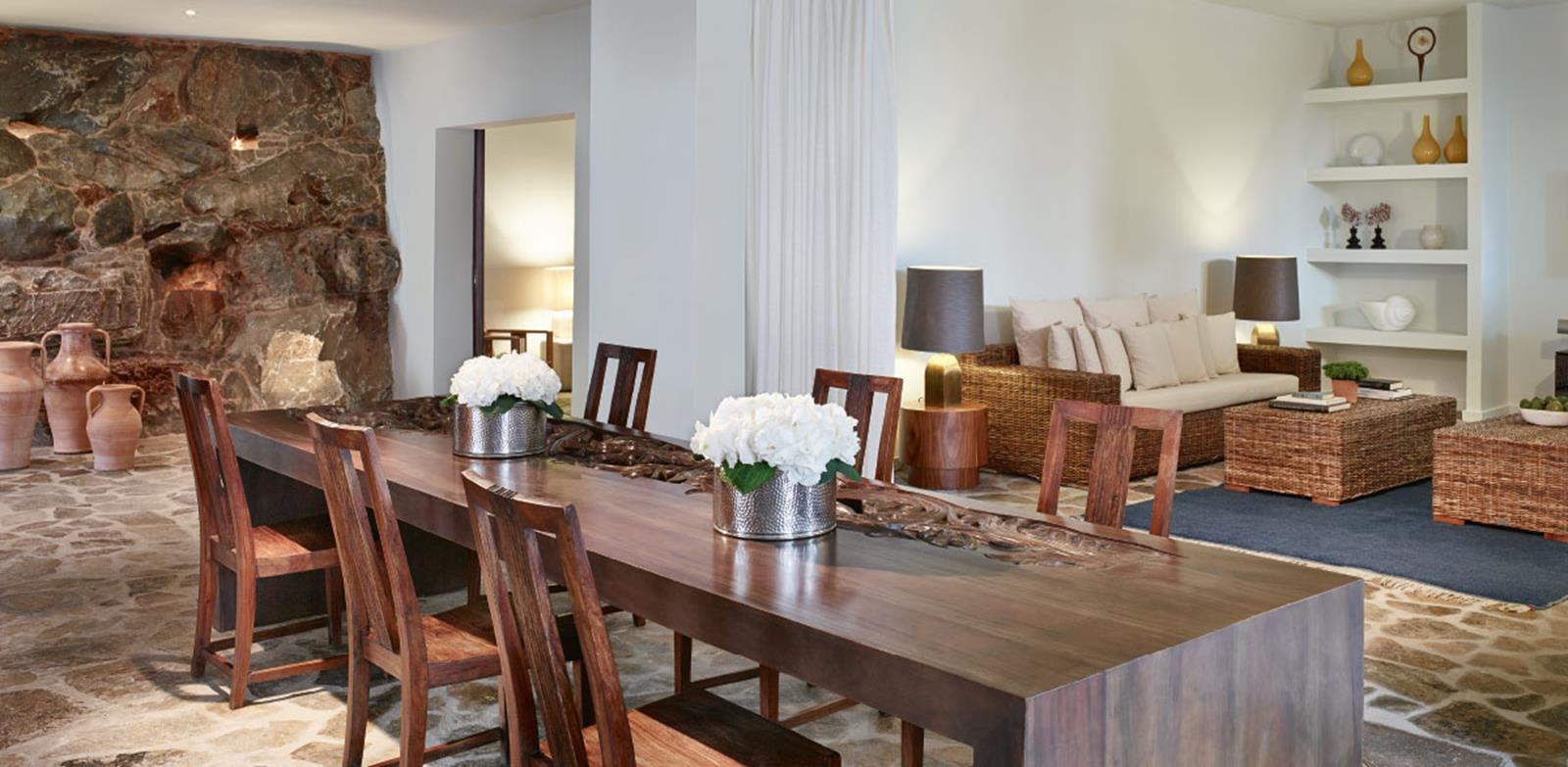 Комментарии: 311 кв.м, терраса 750 кв.м, бассейн 23 кв.м.<br /> 1 уровень, 1 блок и пещера: 1 передняя зона открытой планировки и экстравагантная частная «Пещера» с каменным полом и каменными стенами, просторная стильная гостиная с домашним кинотеатром, обеденная зона с итальянским деревянным обеденным столом ручной работы, полностью оборудованная кухня.<br /> 1 большая двуспальная кровать и 1 большая двуспальная кровать на приподнятом деревянном полу.<br /> Одна роскошная ванная комната с гидромассажной ванной с ароматерапией, 2 умывальниками и отдельной стеклянной душевой кабиной. Вторая ванная комната с двумя каменными раковинами, отдельной душевой кабиной, 15-дюймовым телевизором с плоским экраном, круглой гидромассажной ванной, душем, собственной сауной, массажной кроватью и эллиптическим тренажером.<br /> Частный подогреваемый бассейн Amirandes площадью 23 м² с плавным течением для занятий спортом. Температура воды выше 25ºC за дополнительную плату.<br /> Частная терраса и большой сад, с прямым доступом к пляжу вилл. С шезлонгами, зонтиком, павильоном, гостиной под открытым небом и специальной обеденной зоной на открытом воздухе. Отдельный вход. Парковочное место. 50-дюймовый телевизор с плоским экраном, 15-дюймовый телевизор с плоским экраном в одной ванной комнате и 50-дюймовый телевизор с плоским экраном. Домашний кинотеатр. Круглая гидромассажная ванна. Частная сауна.<br /> Эллиптический тренажер. Массажная кровать. Полностью оборудованная кухня. Штабные помещения. Косметический охладитель. Меню подушек. Частная беседка на пляже вилл.