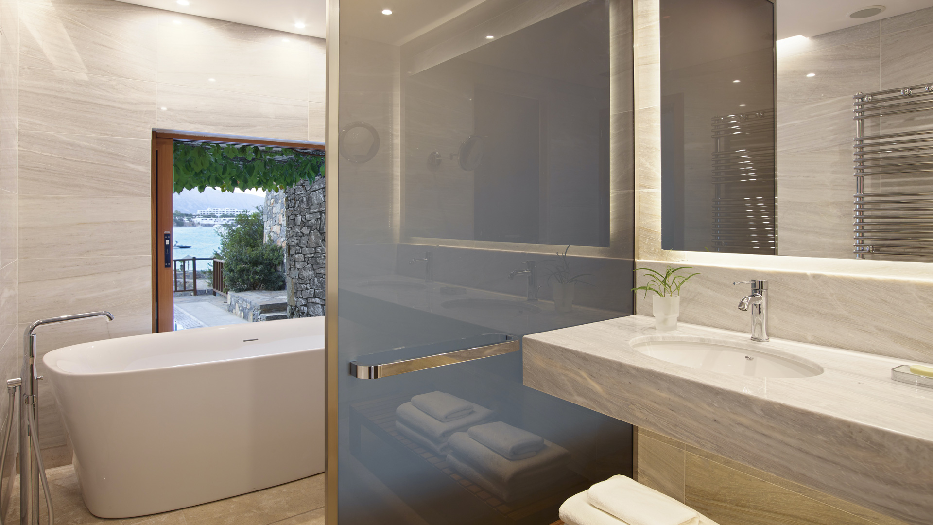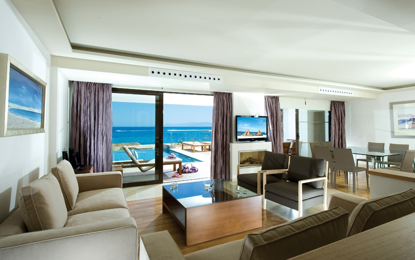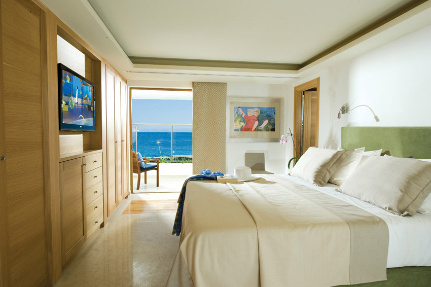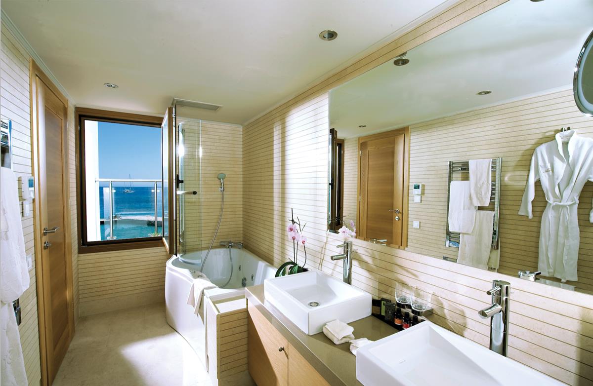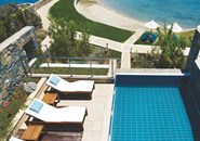 территория: 120 м² внутреннего пространства. Функции: просторный и роскошный сюит, расположенный в непосредственной близости к морю: с индивидуальной площадкой в скалах с лежаками и спуском к морю или с индивидуальным выходом на песчаный пляж отеля<br /> гостиная зона: комфортная гостиная комната<br /> столовая: обеденная зона внутри помещения и на открытом воздухе<br /> ванная комната: две роскошных ванных комнаты, оснащенных системой Airbath®, в одной из которых - паровой душ, в другой - сауна, в некоторых сюитах дополнительная ванная комната с душем/туалетом в гостиной<br /> бассейн: личная обустроенная терраса/сад с бассейном с подогреваемой морской водой<br /> <br /> Особенности сюитов, комфорт и сервис: Индивидуальный кондиционер с система отопления в каждой комнате; Панель управления услугами с кнопками для максимальной детализации пожеланий клиента; Плоский LCD экран ТВ со спутниковым телевидением DVD/CD проигрывателем; Телефон с выделенной линией (платно), бесплатный WiFi, DATA порт; Туалетный столик с зеркалами и феном; Электронный сейф; Роскошные мраморные ванные с системой Airbath®, душевая кабина с паром, аудиоустановка, телефон, полотенцесушитель, зеркала, банные халаты, тапочки и другие банные принадлежности. |