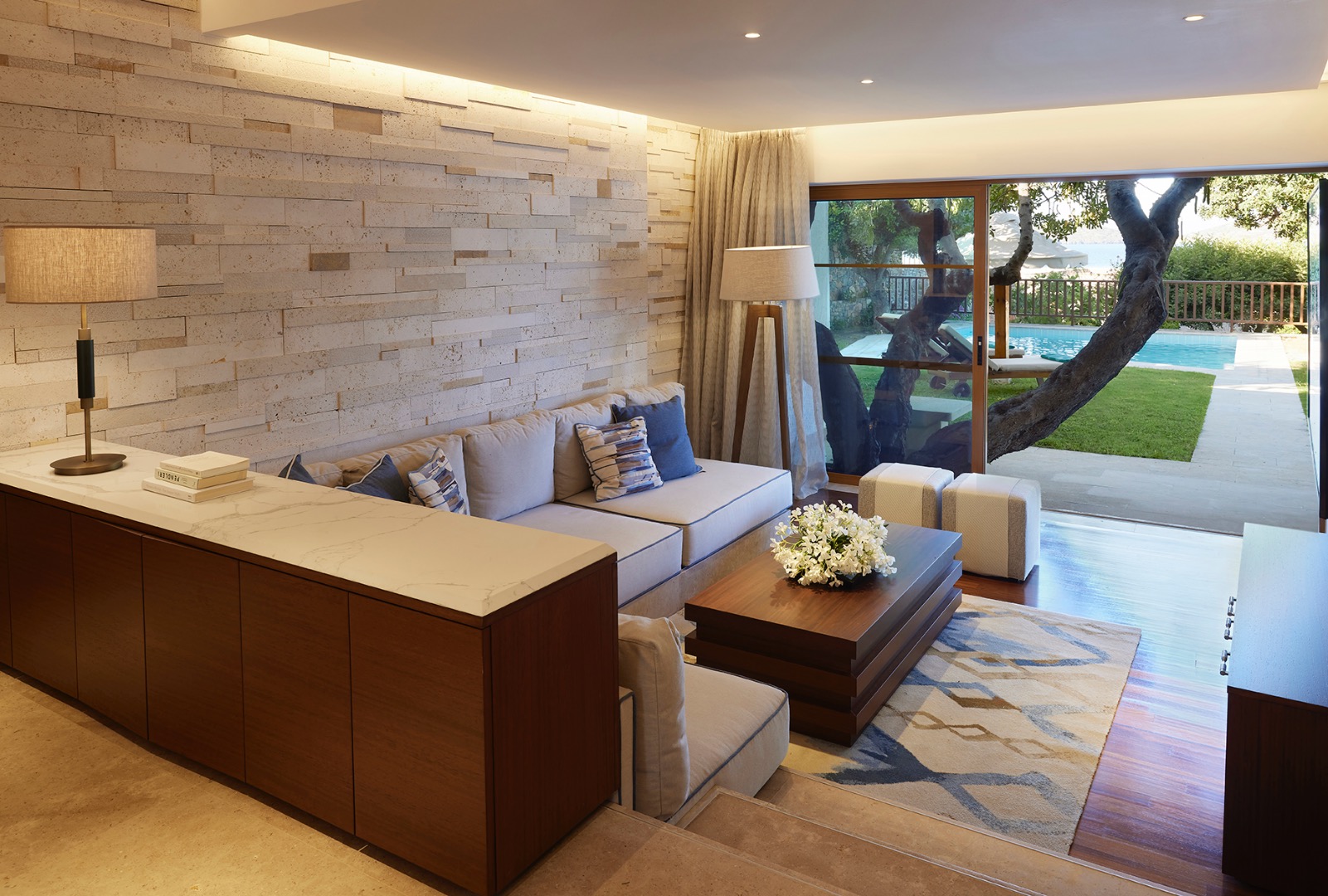 Комментарии: территория: ок. 120 м² внутреннего пространства<br /> функции: просторный и роскошный сюит, расположенный в непосредственной близости к морю: с индивидуальной площадкой в скалах с лежаками и спуском к морю или с индивидуальным выходом на песчаный пляж отеля<br /> гостиная зона: комфортная гостиная комната<br /> столовая: обеденная зона внутри помещения и на открытом воздухе<br /> ванная комната: две роскошных ванных комнаты, оснащенных системой Airbath®, в одной из которых - паровой душ, в другой - сауна, в некоторых сюитах дополнительная ванная комната с душем/туалетом в гостиной<br /> бассейн: личная обустроенная терраса/сад с бассейном с подогреваемой морской водой<br /> Максимальная вместимость: до 5 человек