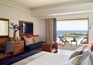 Уборка в номере: Ежедневно Смена белья: Ежедневно территория: Площадь номера около 60 кв.м.<br /> вид на море: Очаровательный вид на море<br /> гостиная зона: Отдельная гостиная комната<br /> терраса: Просторная терраса с мебелью с прямым доступом к большому бассейну с морской водой<br /> идеально для: Идеально для молодых семей |