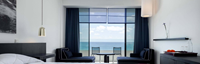 Вид из номера: на море Покрытие пола: Плитка Уборка в номере: ежедневно Однокомнатный номер с большим слайдовым окном.<br /> Удобства в номерах:<br /> Кондиционер/отопление.<br /> Ванная комната.<br /> Спутниковое ТВ.<br /> Халаты и тапочки.<br /> DVD-плеер (по запросу).<br /> Принадлежности для приготовления чая/кофе (по запросу).<br /> Бутылка минеральной воды по приезду.<br /> Фрукты по приезду.<br /> Бутылка вина по приезду.<br /> Эксклюзивные туалетные принадлежности. |