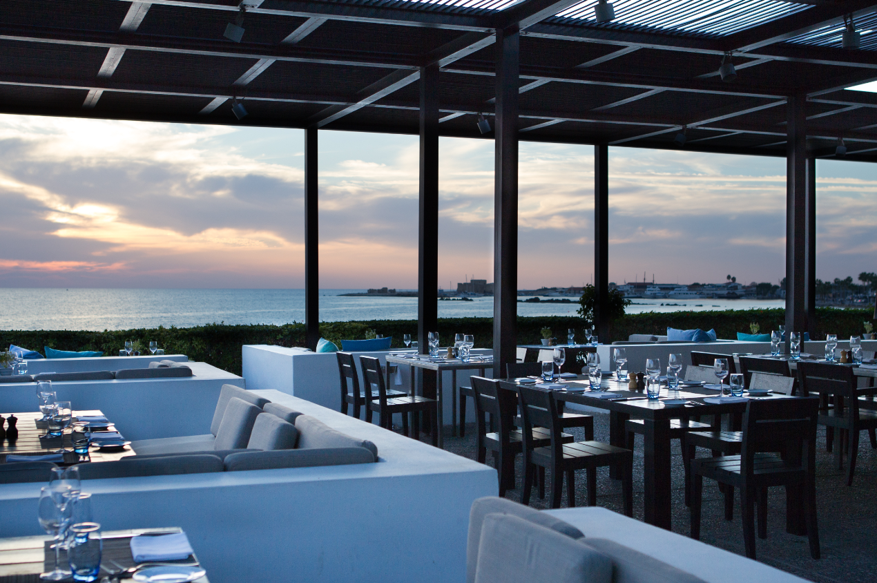 Рестораны a la carte/шведский стол: Mosaics: главный ресторан отеля, предлагающий шведский стол. Специализируется на средиземноморской и международной кухне. Проводятся тематические вечера, посвященные блюдам из морепродуктов, азиатско-тихоокеанской кухне, кипрской традиционной кухне.<br /> Завтрак: 07:00-10:00.<br /> Обед (только зимой): 12:30-15:30.<br /> Ужин: 19:00-22:00.<br /> <br /> Notios: ресторан a la carte, сочетает чистоту японской кухни и чувственный вкус Средиземноморья. Шеф-повар - сторонник экспериментов в области создания новых вкусов, текстур и цветов, результатом его творчества являются оригинальные и в то же время простые идеи современной кухни.<br /> Обед: 12:30-15:30.<br /> Ужин: 19:00-22:00 (март-декабрь, в зависимости от погодных условий).<br /> <br /> Ouzeri: традиционный средиземноморский летний ресторан на побережье. Предлагает легкие закуски и традиционные кипрские блюда. Если позволяют погодные условия, периодически проводятся вечера барбекю с живой греческой музыкой. <br /> Открыт: 10:00-22:00 (апрель-ноябрь).<br /> (декабрь-март: 12:00-16:30, в зависимости от погодных условий).<br /> <br /> Aeras: ресторан, расположенный справа от лобби у камина, где гостям предлагают попробовать изысканные закуски, приготовленные с учетом индивидуальных предпочтений, с прекрасным видом на море. <br /> Ужин: 19:00-21:30 (только зимой).<br /> <br /> Eauzone: ресторан с потрясающими видами на Средиземное море, расположенный в SPA-центре. Предназначен только для взрослых гостей, предлагает кипрский завтрак, полезные закуски в Almyraspa.<br /> Открыт: 10:00-19:00 (только летом).