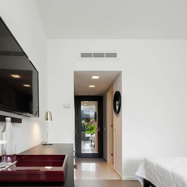Расположение номера: на первом этаже Вид из номера: на море Покрытие пола: Плитка Уборка в номере: ежедневно Однокомнатный номер: 28 кв.м + терраса 8 кв.м (терраса, выходящая на лужайку (в этой категории номеров возможно размещение с собаками до 10 кг)). <br /> <br /> Удобства в номерах:<br /> Кондиционер/отопление.<br /> Ванная комната.<br /> Спутниковое ТВ.<br /> Халаты и тапочки.<br /> DVD-плеер (по запросу).<br /> Принадлежности для приготовления чая/кофе (по запросу).<br /> Бутылка минеральной воды по приезду.<br /> Фрукты по приезду.<br /> Бутылка вина по приезду. |