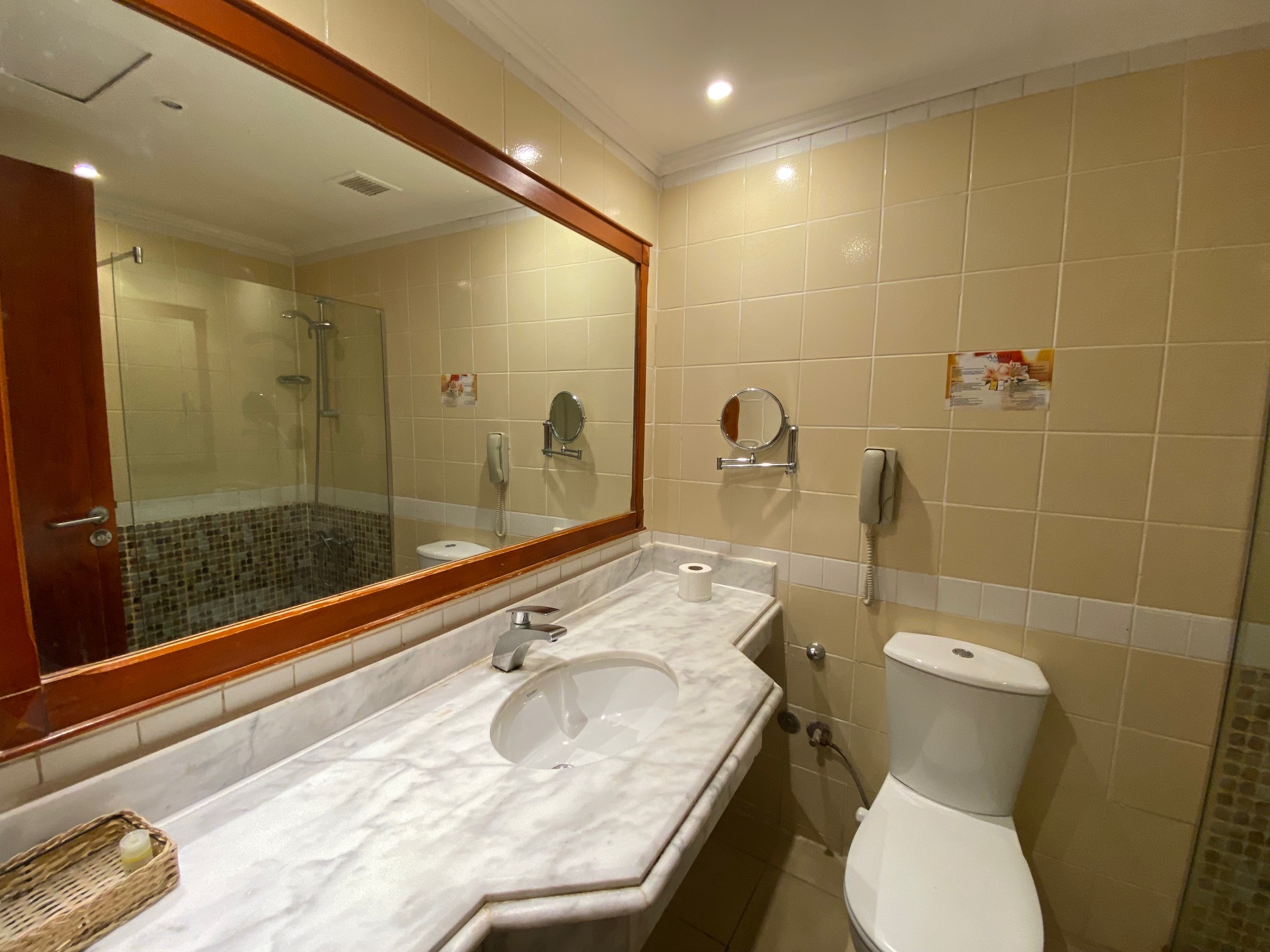 Расположение номера: основное здание Вид из номера: частичный вид на море / на бассейн Балкон или терраса, мини-бар.<br /> Ванна или душ. |