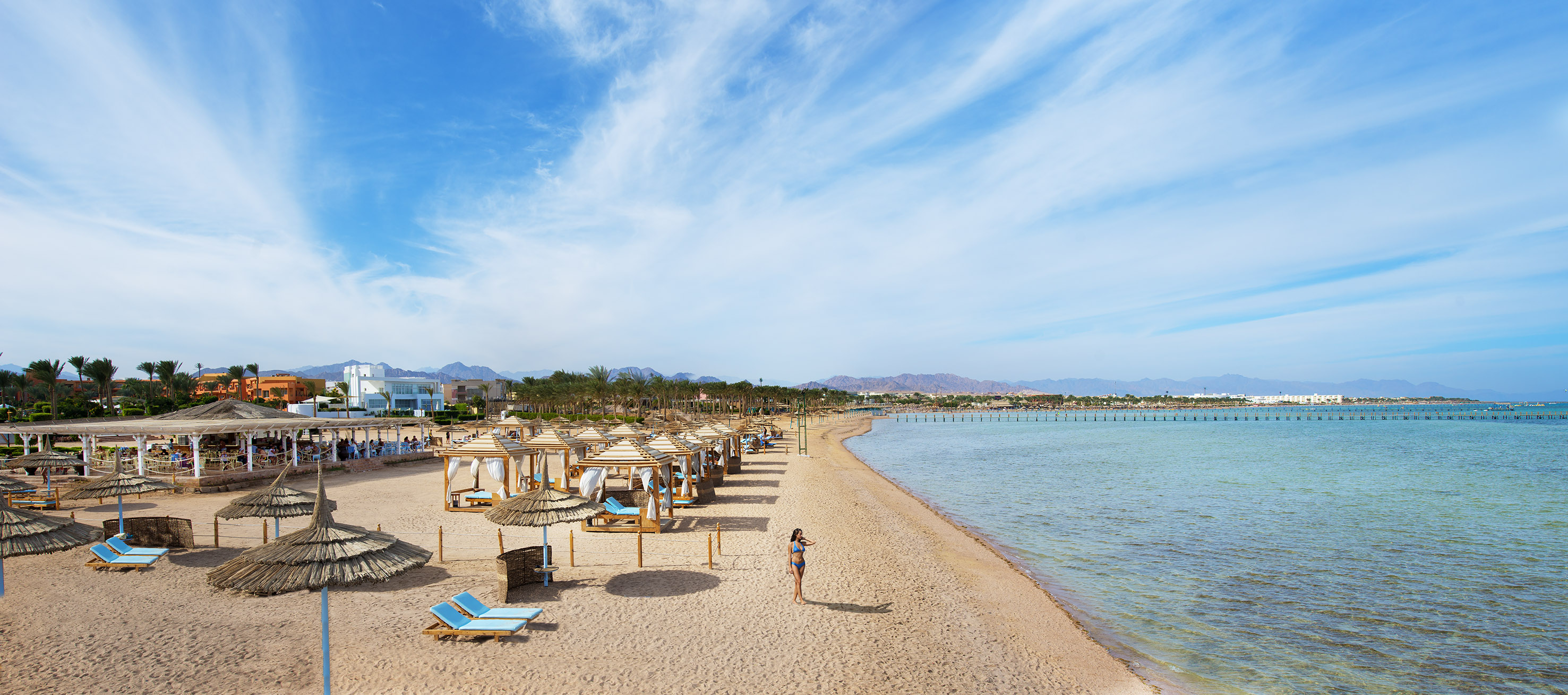 Пирс, понтон: Деревянный понтон, 320 м Территория пляжа: Собственный песчаный пляж. Длинна: 600 м Вход в море: Кораллы. До глубины - около 200-300 м. Комментарии: Бесплатные шезлонги, зонтики и пляжные полотенца, самый большой пляж в районе Набк. |
