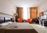 Вид из номера: на город Покрытие пола: Паркет Наполнение мини-бара: пополнение по запросу Уборка в номере: каждый день Смена белья: каждый день, по запросу Дополнительные услуги: Утюг, гладильная доска по запросу |