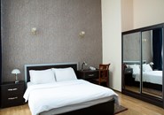 Вид из номера: на город Покрытие пола: Ковролин Уборка в номере: каждый день Смена белья: каждый день, по запросу Дополнительные услуги: Утюг, гладильная доска по запросу |