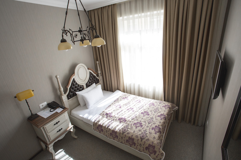 Вид из номера: на город Покрытие пола: Ковролин Уборка в номере: каждый день, по запросу Смена белья: через день, по запросу |