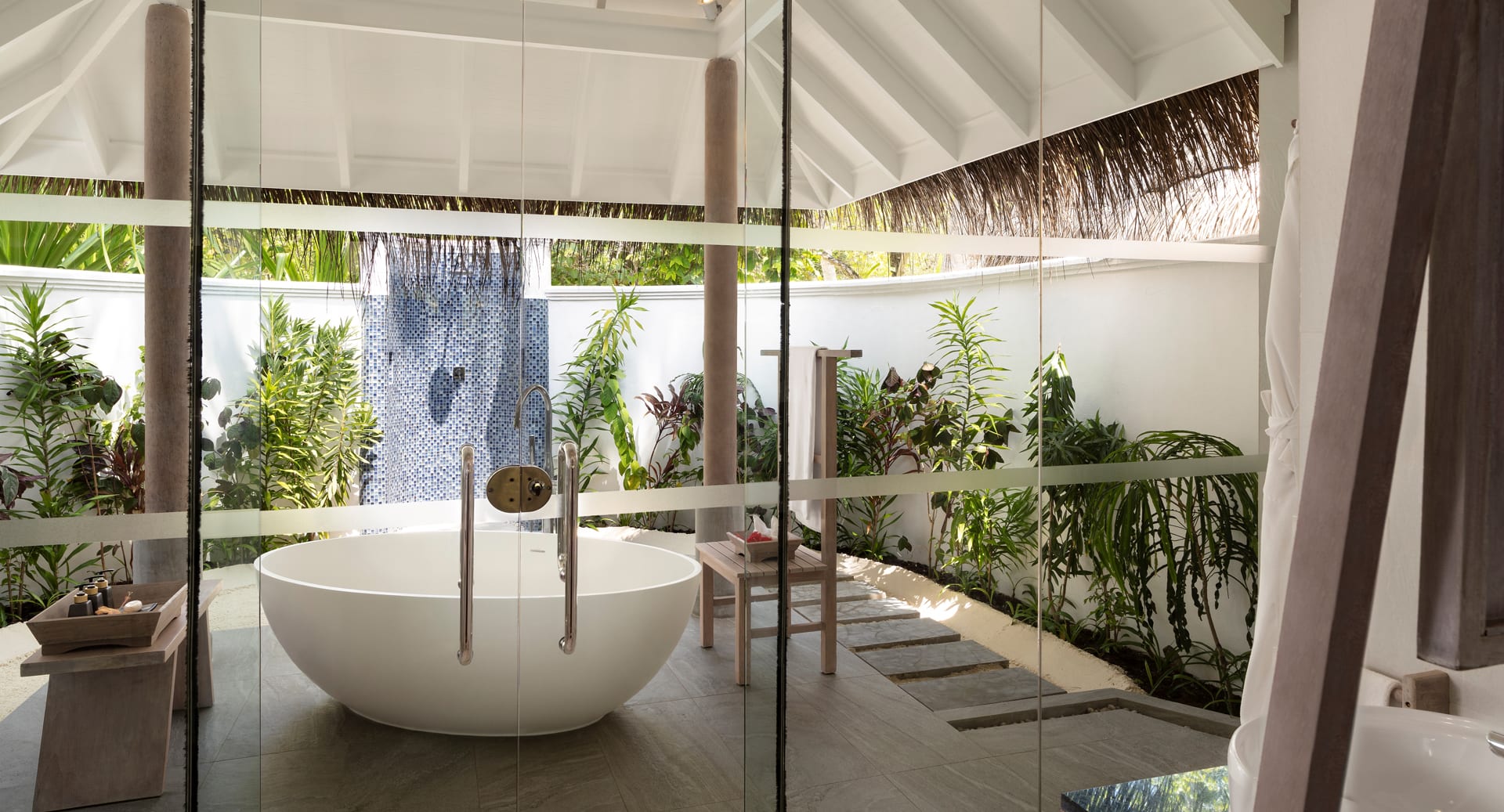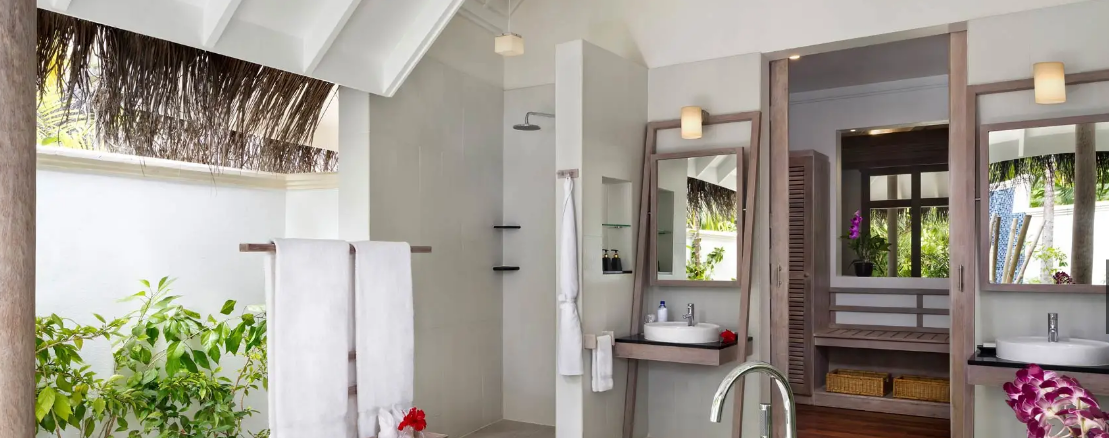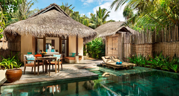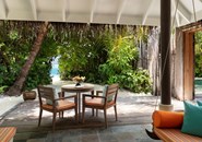 Вилла с частным бассейном с видом на восход солнца. Личный дворецкий будет рад выполнить любую вашу просьбу. Индийский океан с его бирюзовой водой находится в нескольких шагах.<br /> Терраса с кушеткой, местом для обеда и шезлонгами.<br /> Кофеварка-эспрессо. <br /> Ванная комната под открытым небом с отдельной ванной-терраццо и ливневым душем. |
