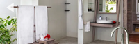Расположение номера: рядом с пляжем. Виллы с видом на закат солнца. Терраса с кушеткой, местом для обеда и шезлонгами. 1 двуспальная кровать, дополнительная кровать-раскладная кровать/ кушетка. ТВ, DVD, iPod станция, сейф, Wi-Fi и кабельный интернет. Принадлежности для чая/ кофе. Ванная комната на открытом воздухе: ванна, ливневый душ. |