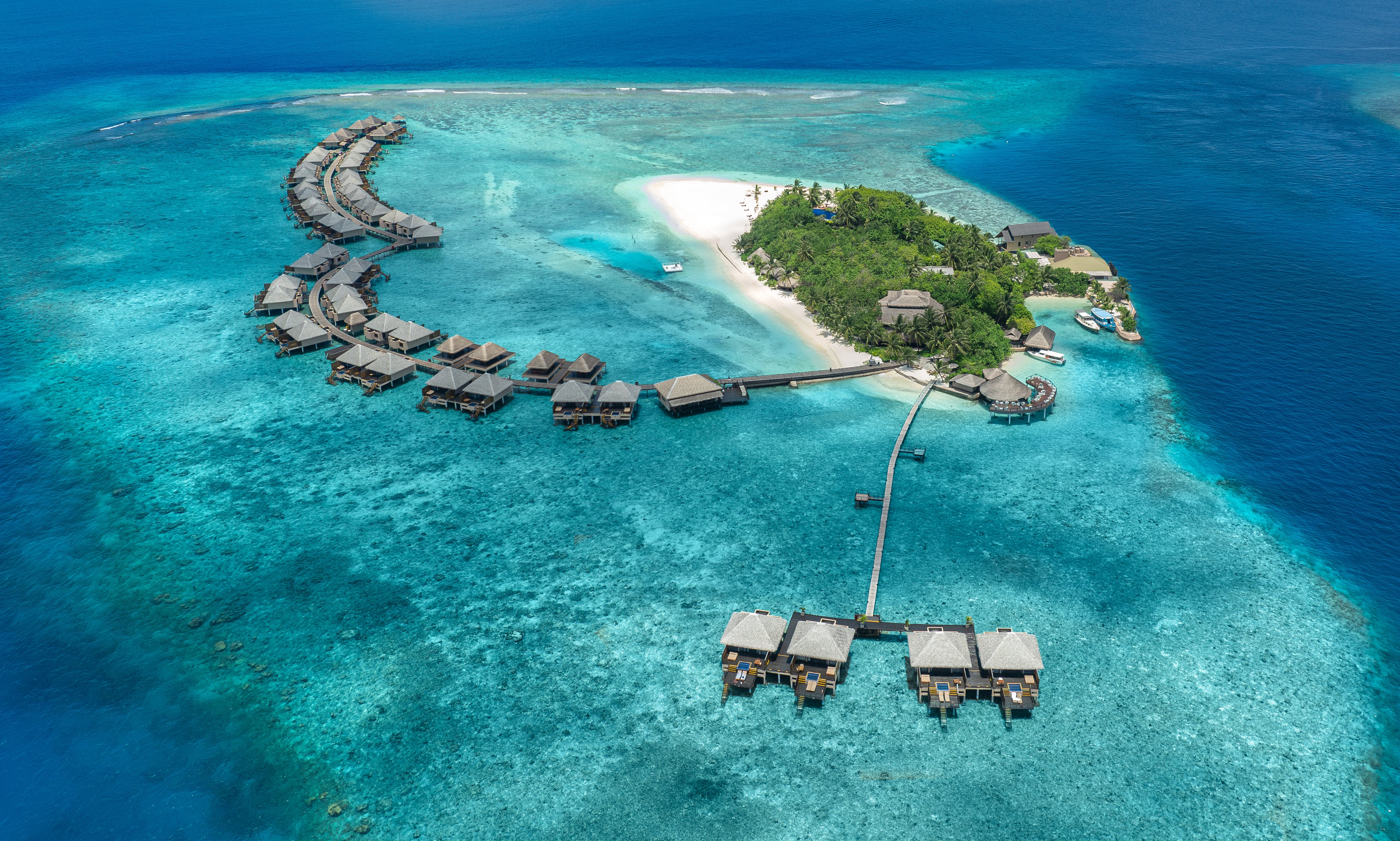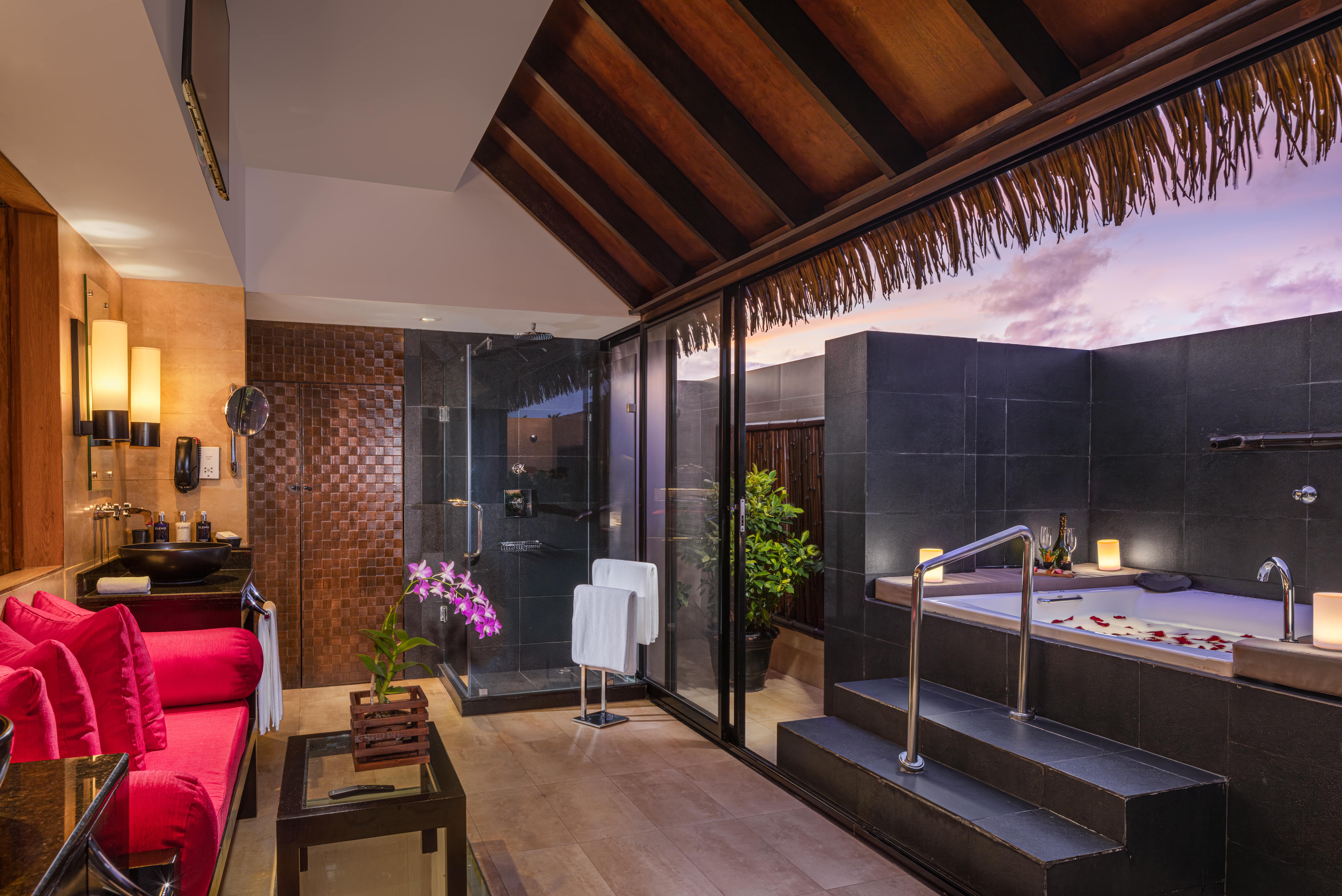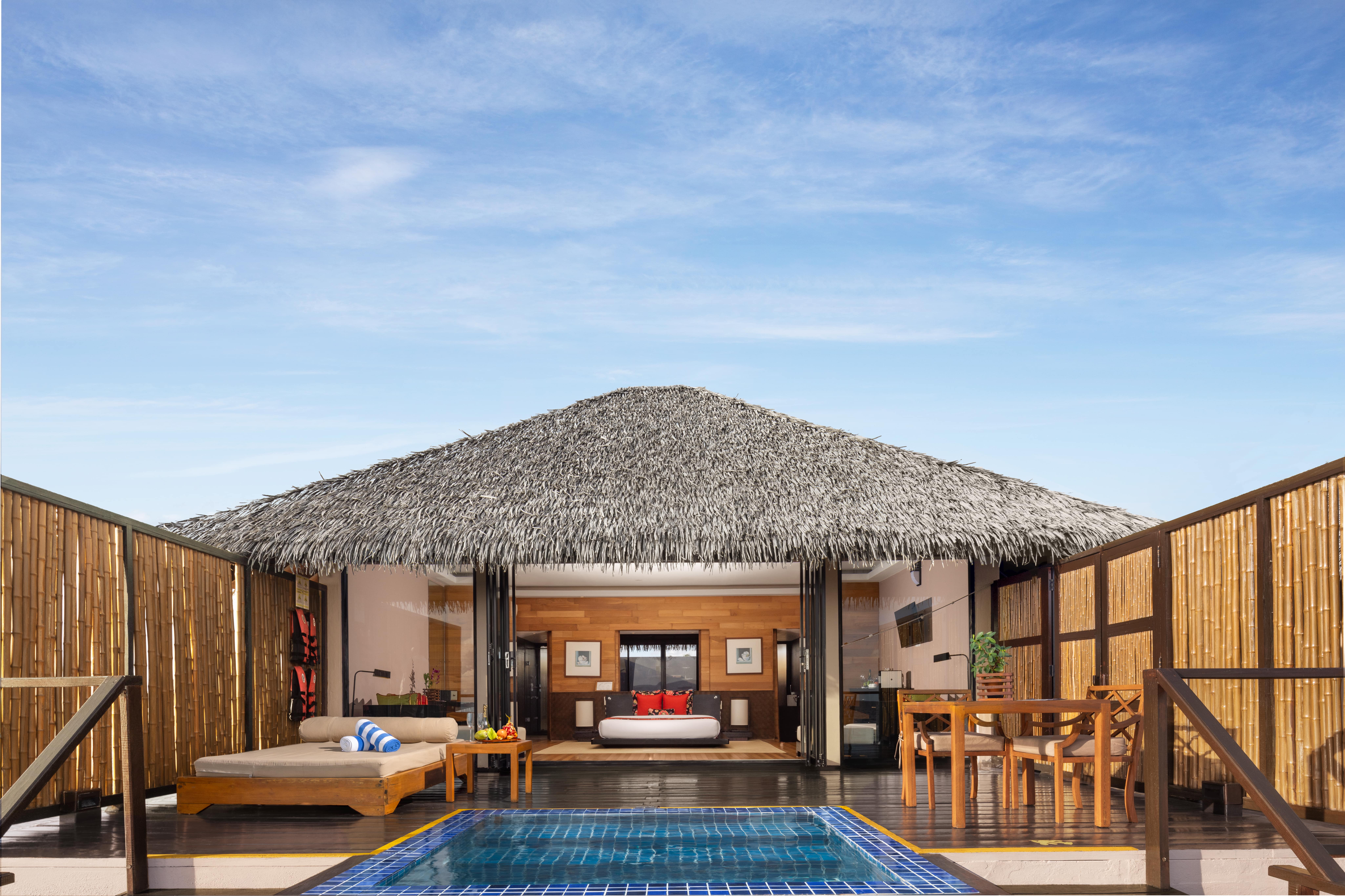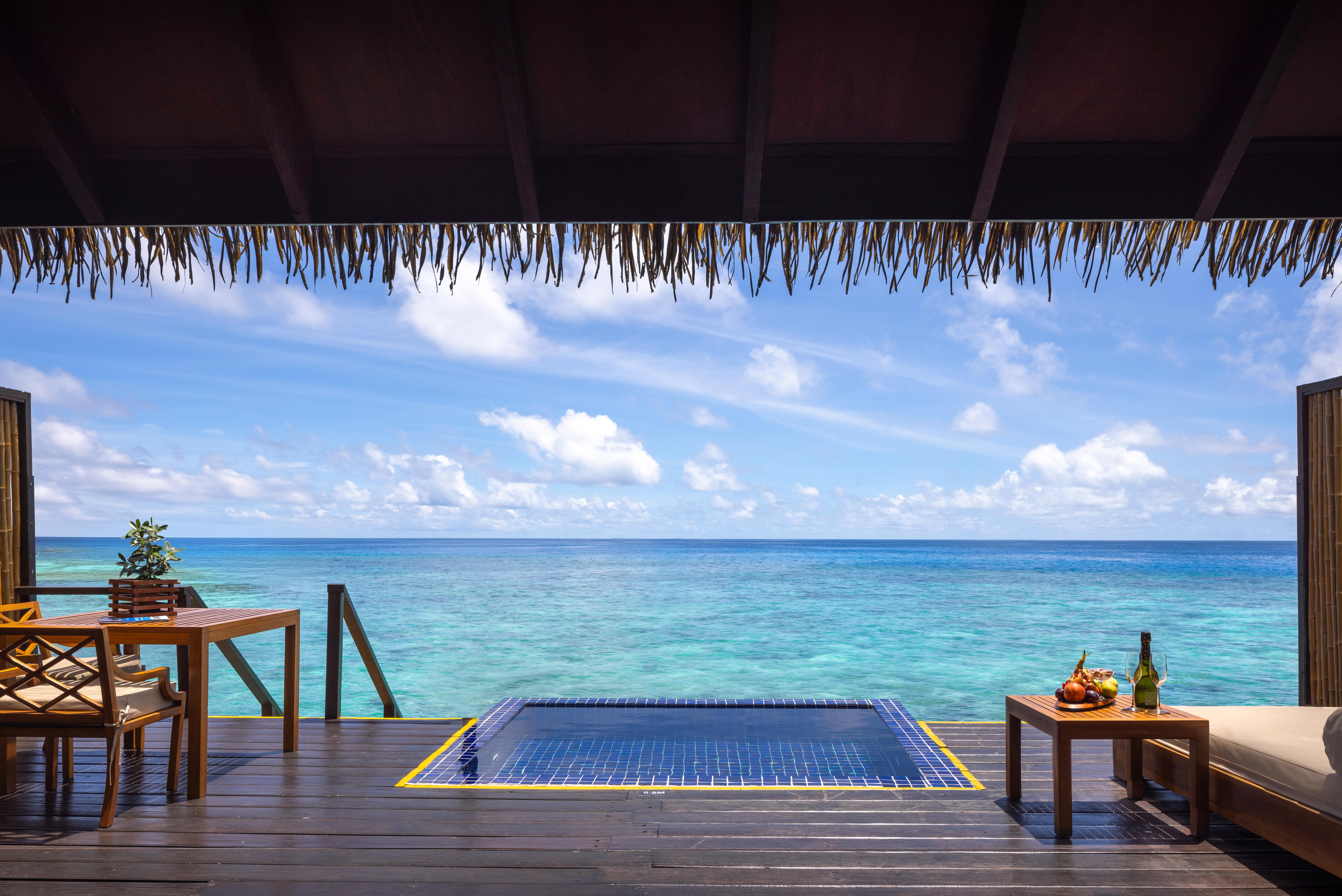 Комментарии: 4 виллы, расположены отдельно от остальных вилл. Двухъярусная терраса с шезлонгами и обеденной зоной, спуск в воду (деревянная лестница), бассейн на террасе. <br /> Банные принадлежности.<br /> Игристое вино или безалкогольное игристое вино, бесплатные свежие фрукты и ассорти из орехов по прибытии.<br /> Бесплатные канапе по вечерам.<br /> На виллу ежедневно доставляются два вида свежих фруктов.<br /> Меню подушек.<br /> Услуги дворецкого.